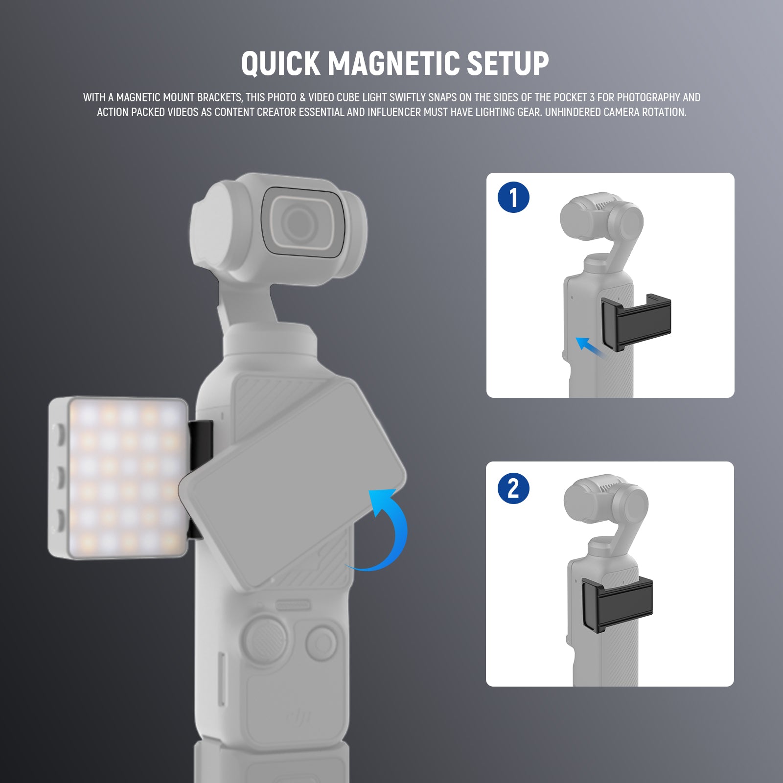 - Quick Magnetic Setup- With a magnetic mount brackets this photo & video cube light swiftly snaps on the sides the pocket 3 for photography and action packed videos as content creator essential and influencer must have lighting gear