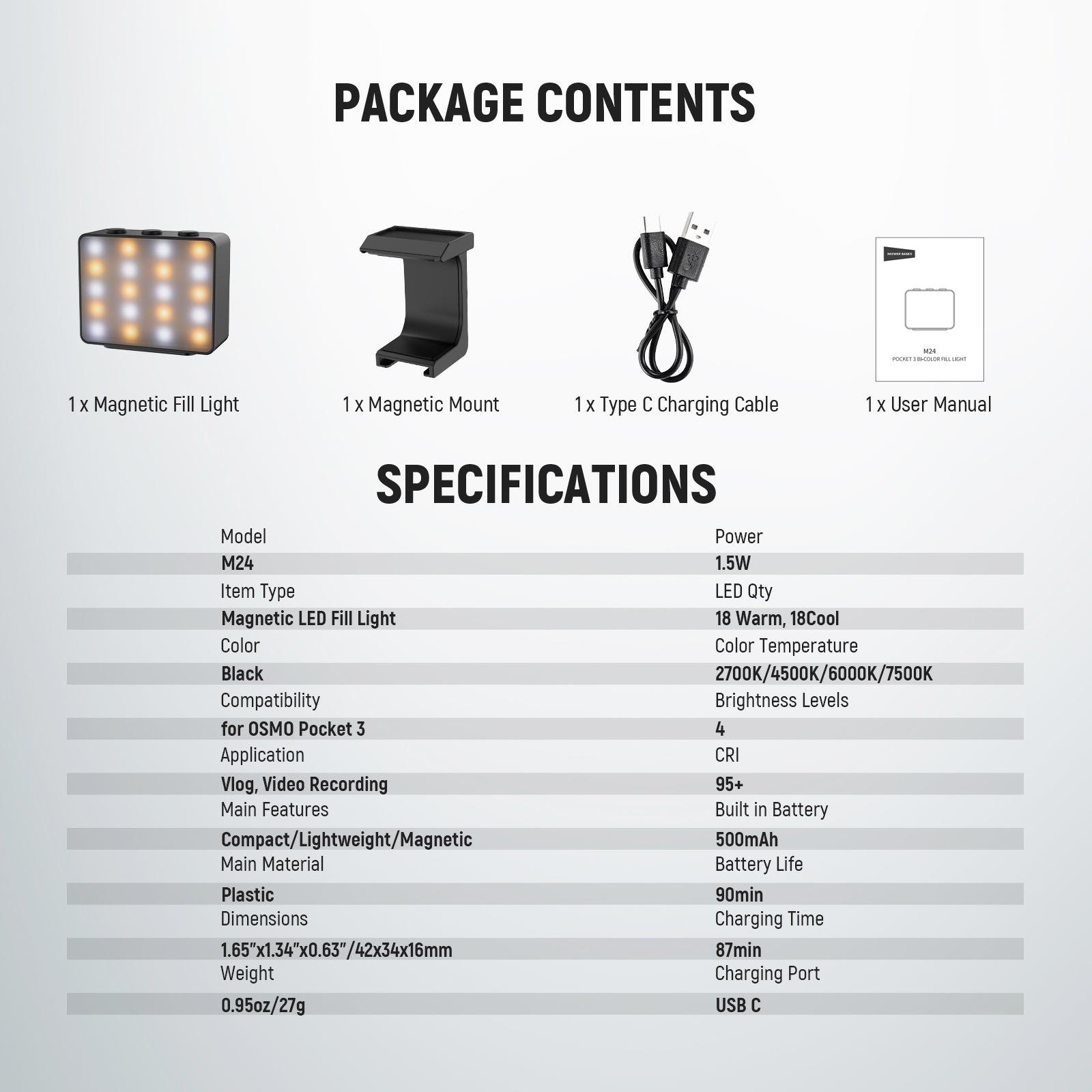 - 1 x Magnetic Fill Light