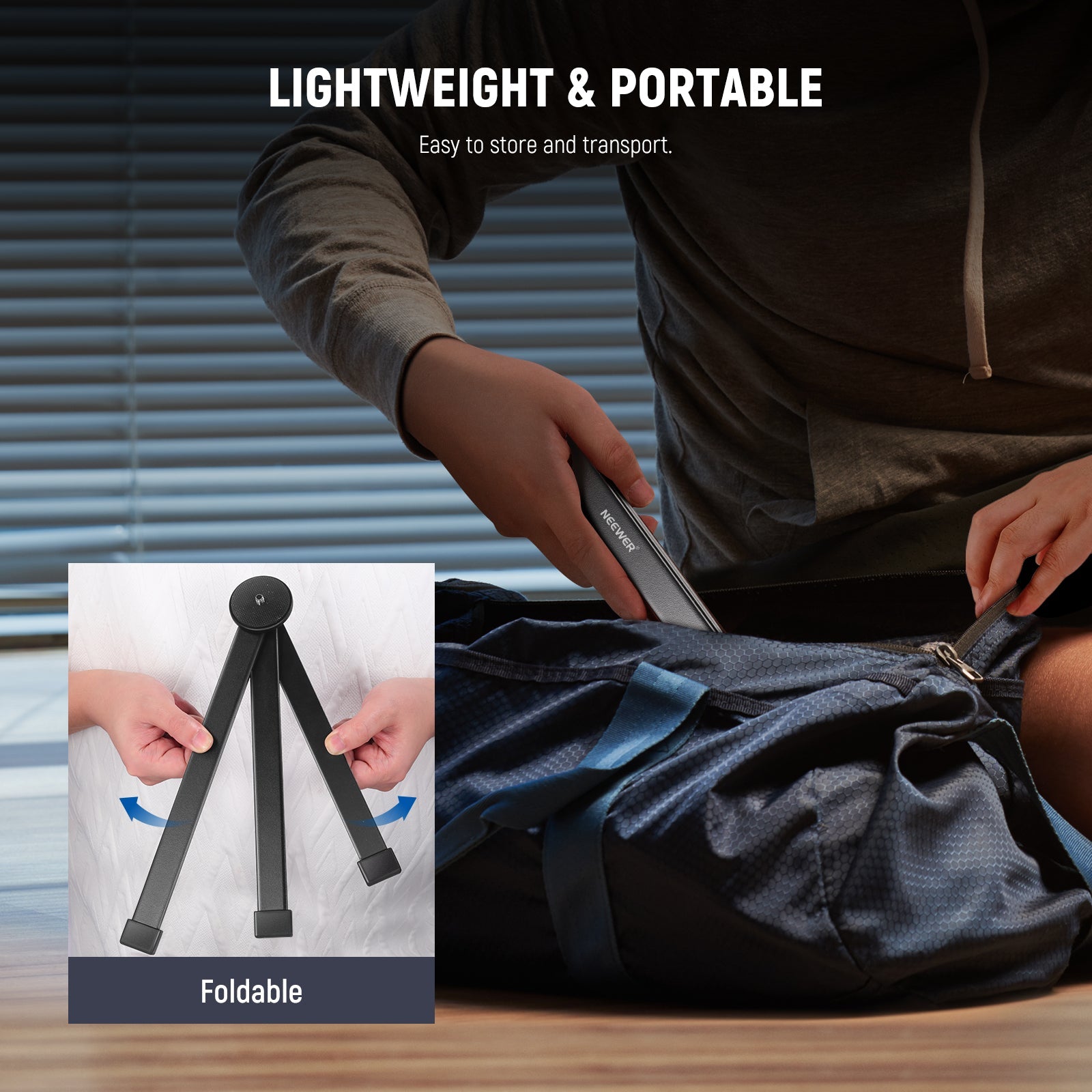 - Foldable & Compact Structure- Easy to use, this tripod stand can be spread and folded by rotating the top mounting plate. When folded, it measures 12"x2"x2"/300x50x50mm for ease of storage and transportation