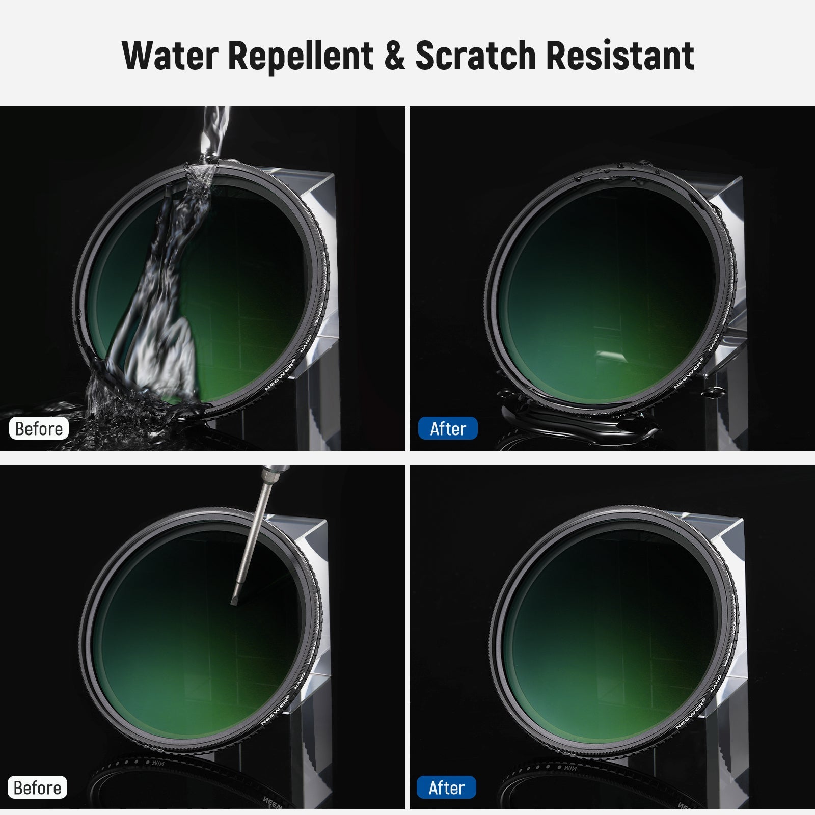 - Multi Coated HD Optical Glass Build- The ND filter features double sided coatings to reduce glare and reflection while effectively protecting the glass from water, dust, oil, debris, and scratches. The HD optical glass material helps block strong light without losing image sharpness. The knurled ring provides a firm grip for easy filter mounting and removal