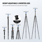 - Introducing NEEWER BASICS- Simple and practical, NEEWER BASICS is an economical product line that focuses on essential functions and designs, without unnecessary extras and materials. The TP66 is a portable yet powerful horizontal overhead tripod (20.2"-64.5"/51.5-164cm), supporting up to 22lb/10kg of gear and allowing 360° pan and 180° tilt. The tripod can also be converted into a monopod (16.7"-51.5"/42.6-130.8cm) to meet various scenarios