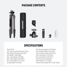 - Multi Angle Adjustments & Quick Release- The center column tilts 180° and rotates 360° via locking knobs, enabling fast transitions between horizontal, vertical, and angled positions for diverse shooting needs. This camera equipment can also be inverted for low angle or macro photography. The 360° ball head includes an Arca type quick release plate for swift mounting and dismounting
