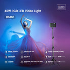 - Compact with Cooling Fan- The BS40C (4.6"x3.1"x1.8",9.8oz) is a portable LED RGB camera soft light, ideal photography & videography lighting for YouTube TikTok films, selfie photos, videos on the go. Built in fan with 3 cooling modes: Smart/Boost/Silent for efficient heat dissipation
