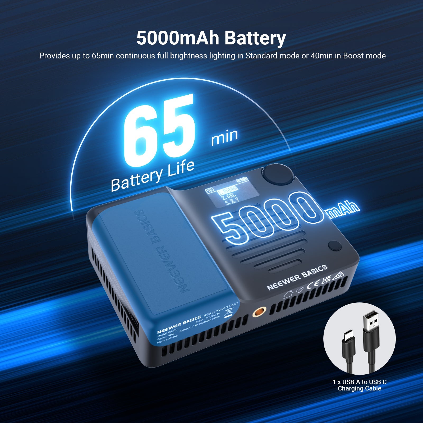 - 5000mAh Battery- Provides up to 65min continuous full brightness lighting in Standard mode or 40min in Boost mode. Mini pocket panel light for portrait photos, studio photoshoot, podcast, makeup artists filming, still life photography, vlogging, video conferencing, game streaming, etc.