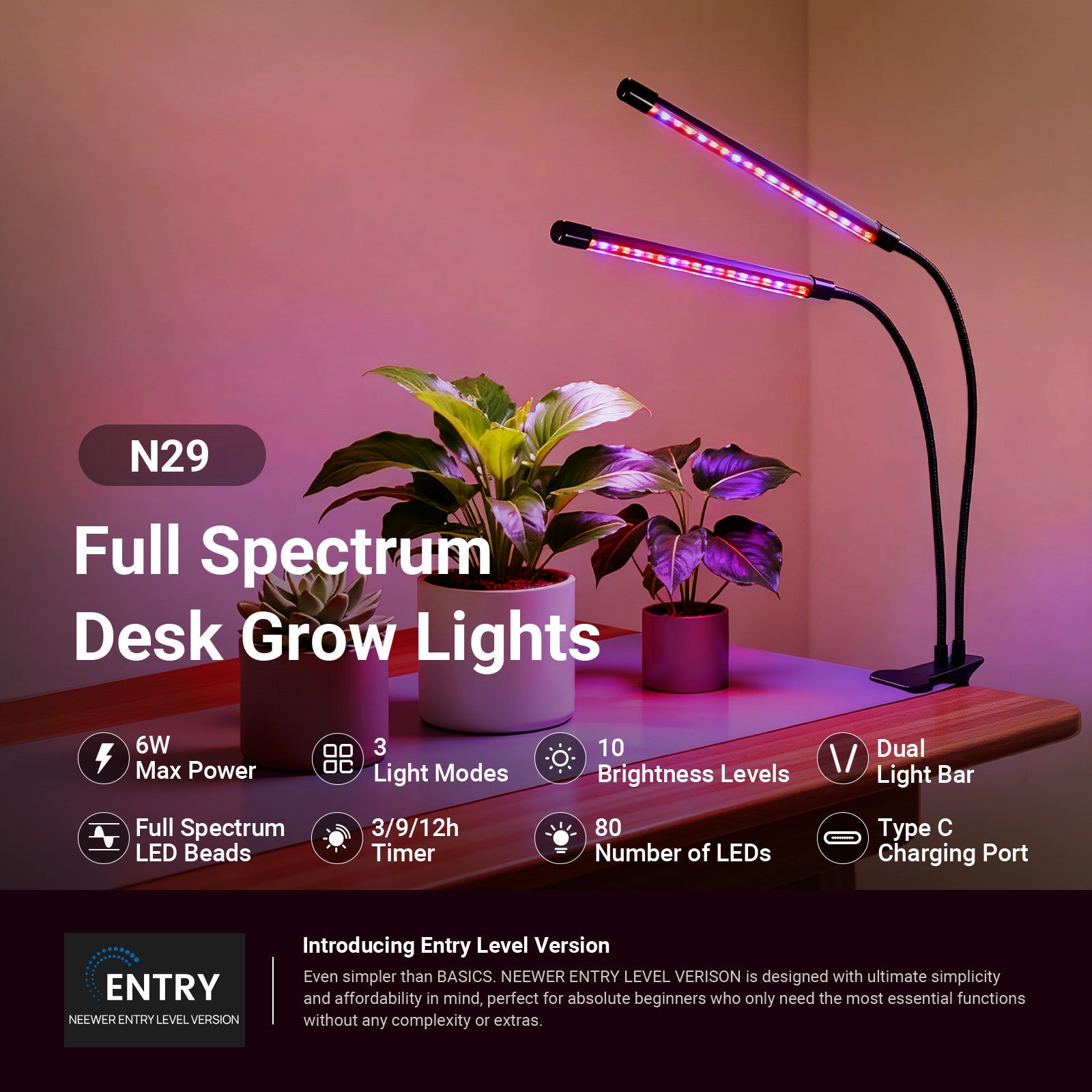 NEEWER ENTRY LEVEL VERSION N29 Full Spectrum Desk Grow Lights