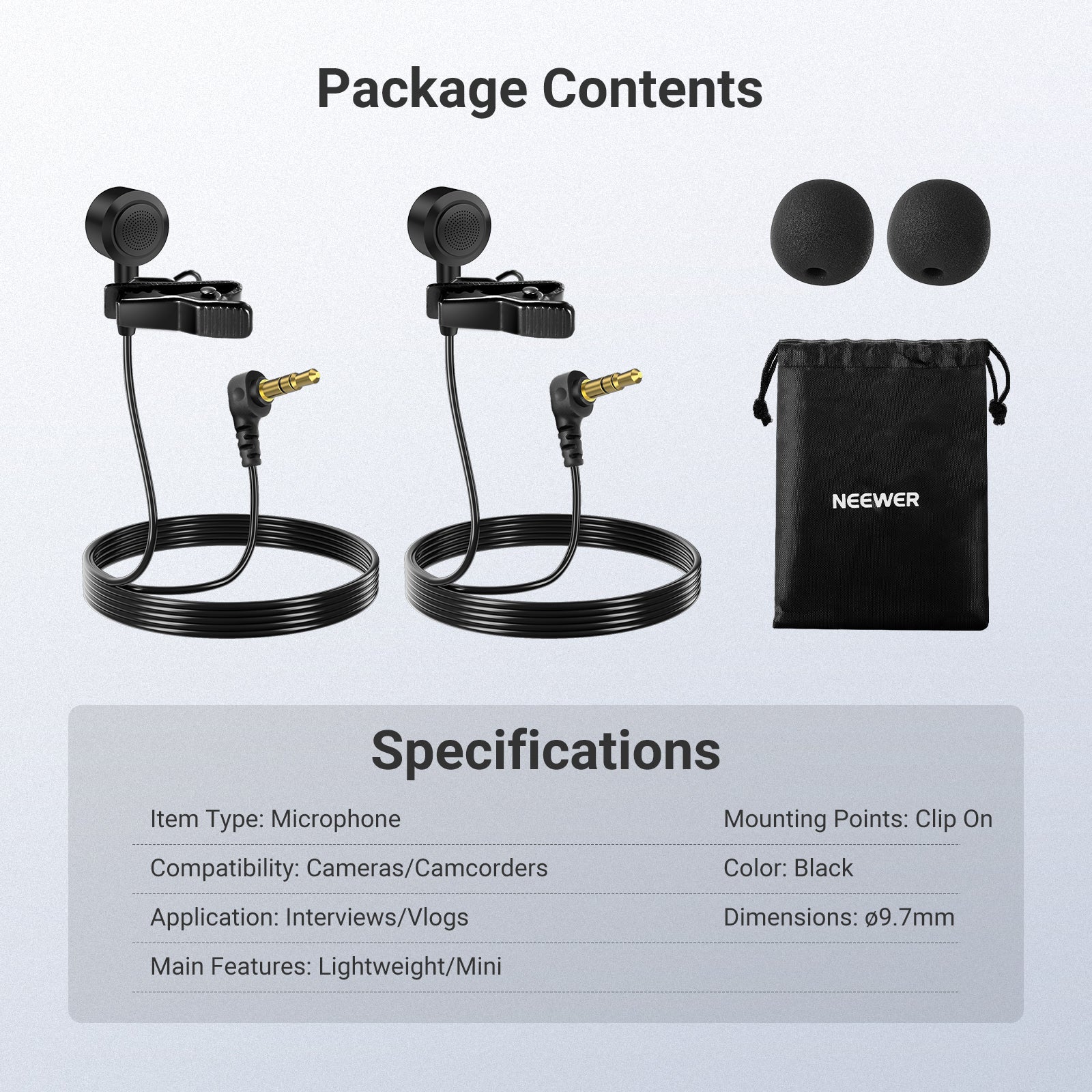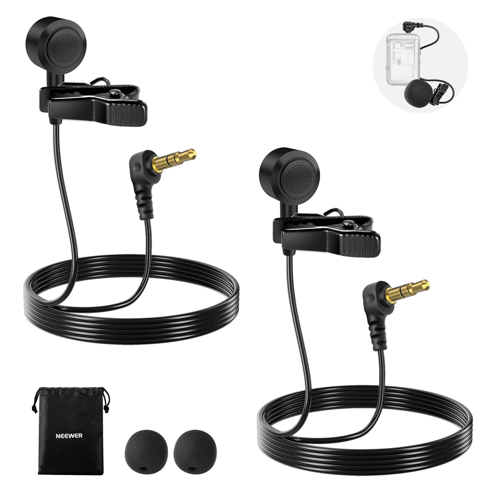 NEEWER LM10 2 Pack 3.5mm TRS ø9.7mm Lavalier Microphone