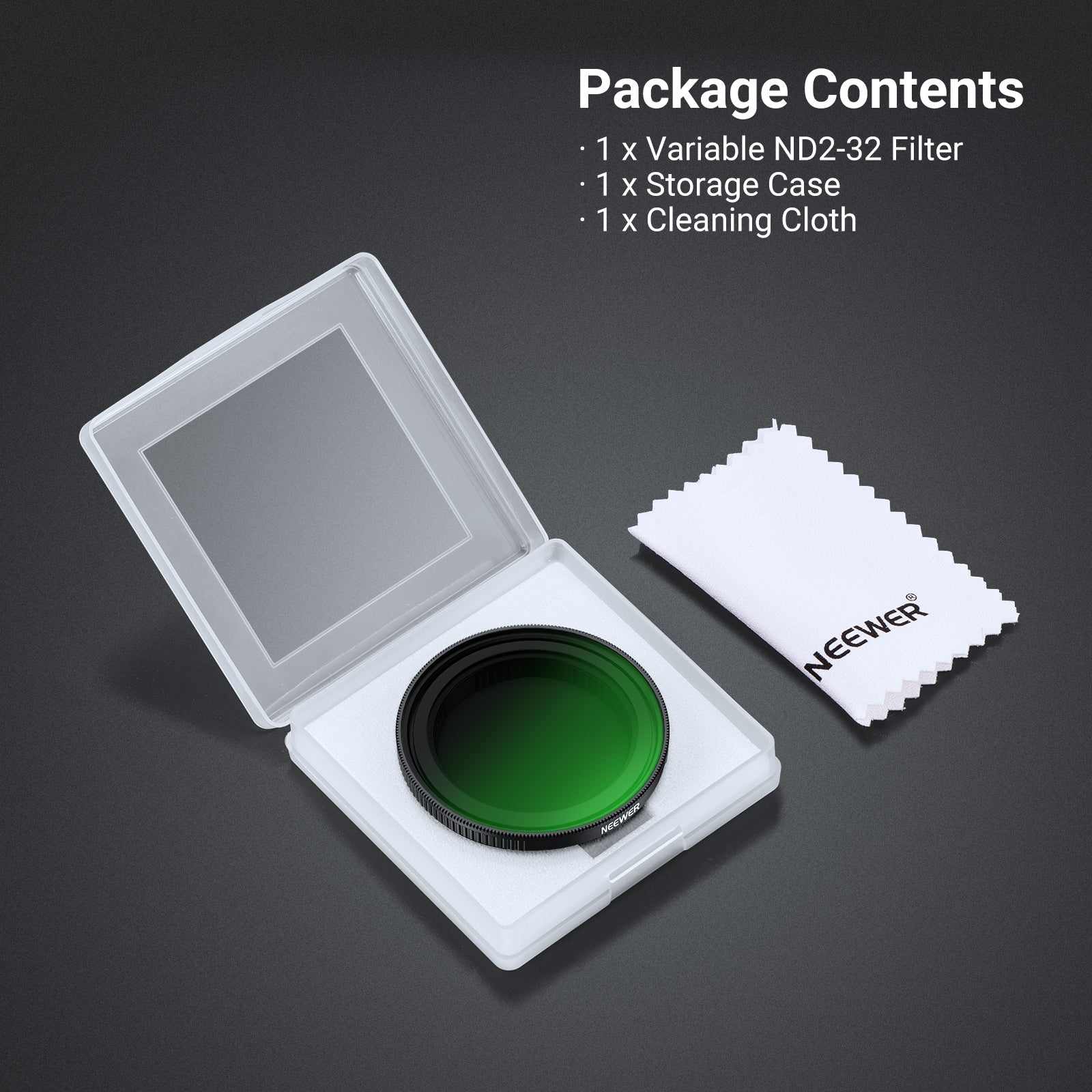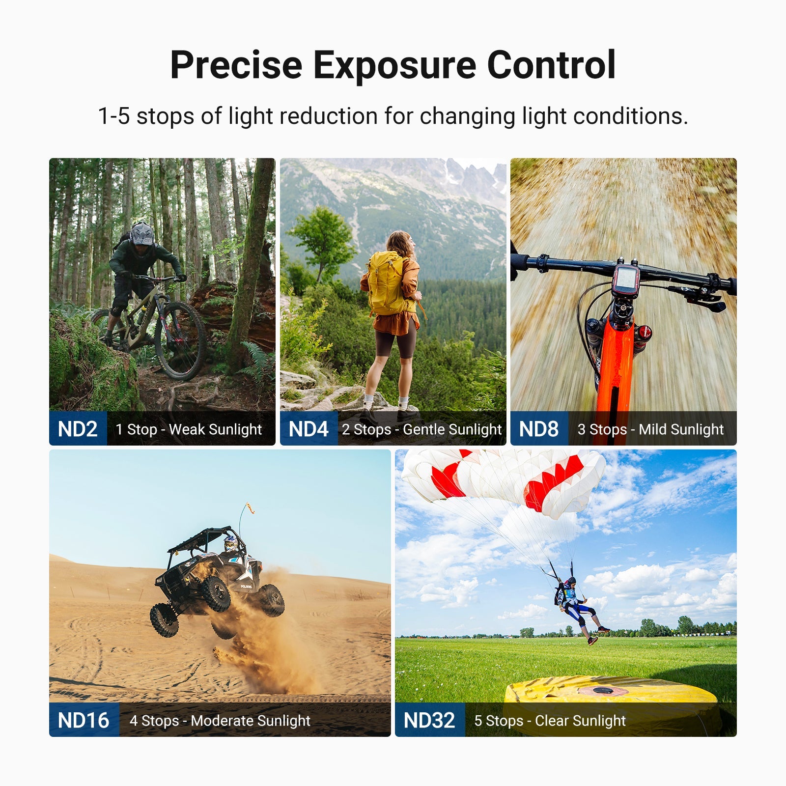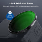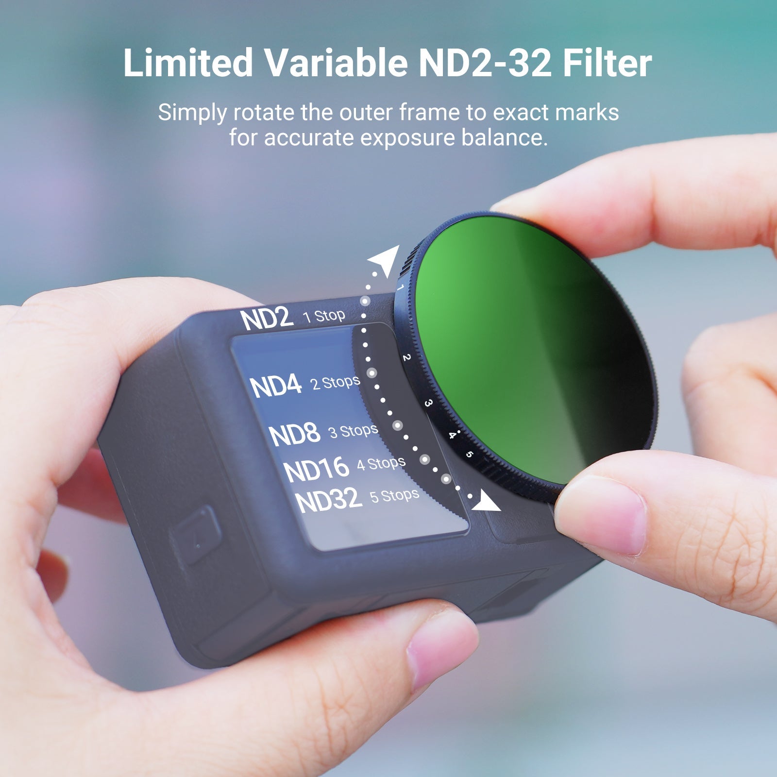 - Flexible Exposure Control- Variable ND2-32 filter cuts light by 1-5 stops to prevent overexposure in various conditions while adding dynamic motion blur effects. Rotate the frame for accurate ND adjustment