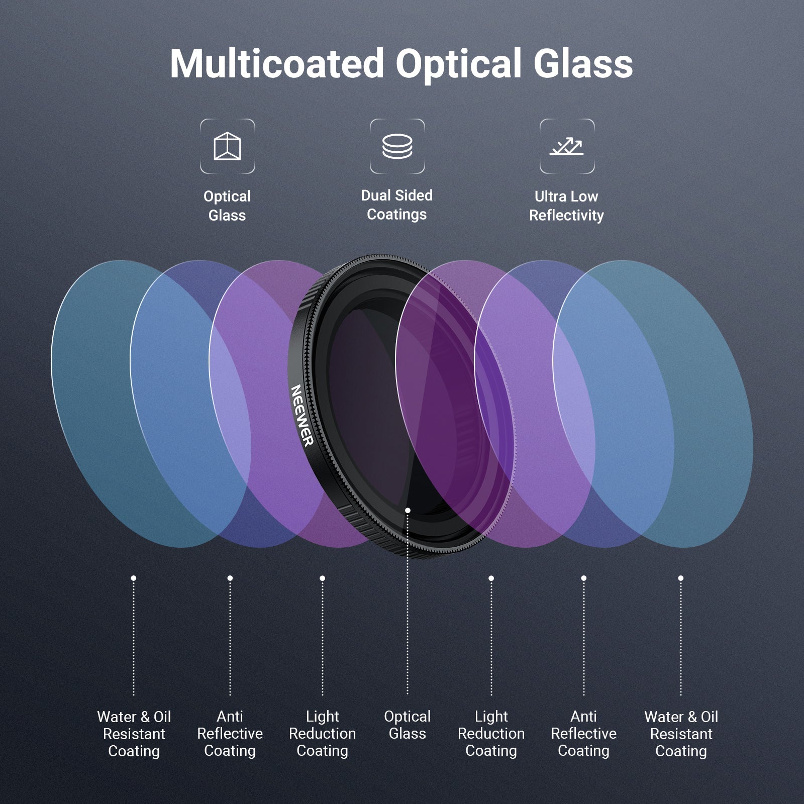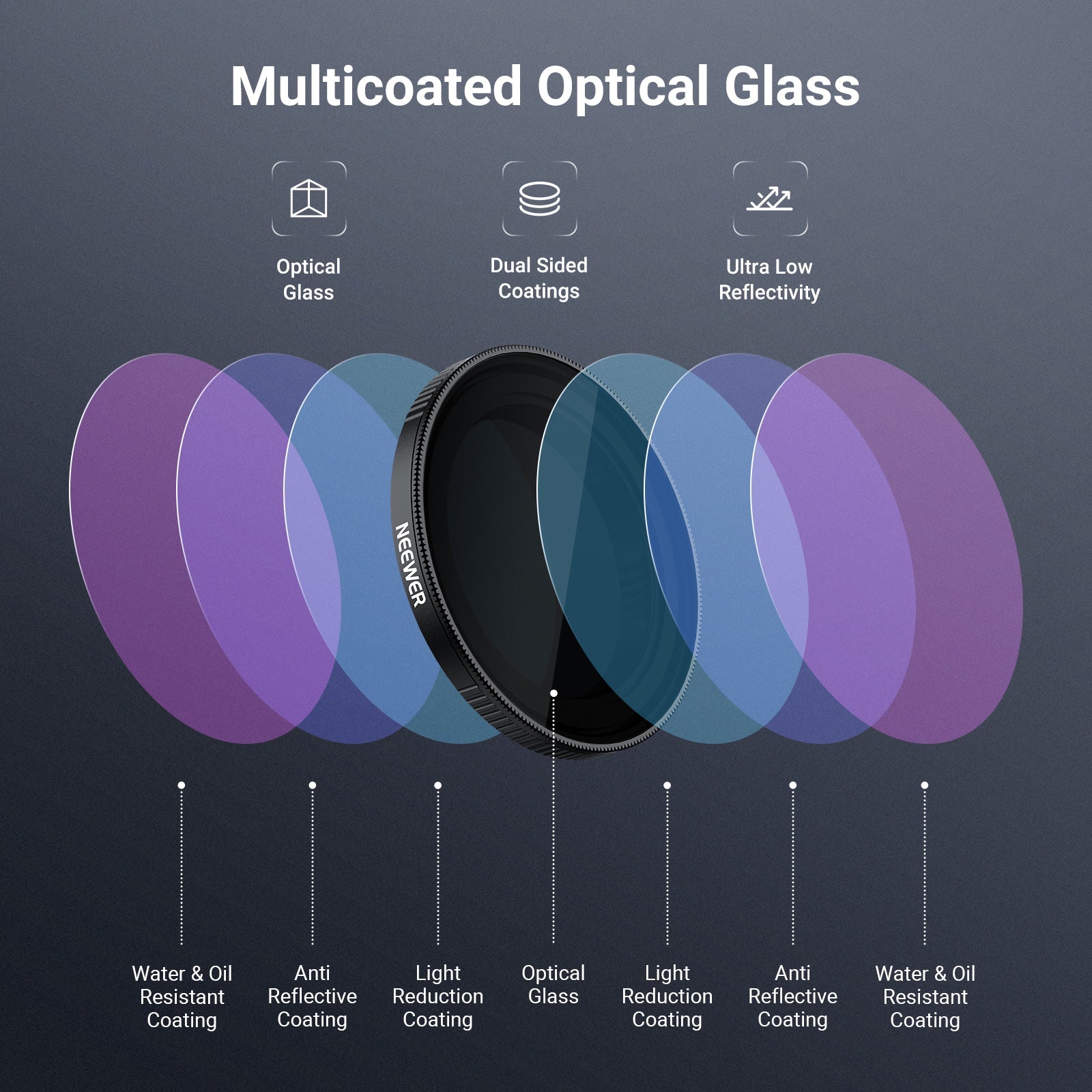 - Multicoated Optical Glass- Take sharp images and footage with neutral color rendition. Multiple protective coatings resist water, dust, scratches, and fingerprints. A cleaning cloth and portable carry case are included