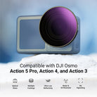 - Made for Action 5 Pro/4/3- Compatible with DJI Osmo Action 5 Pro, Action 4, and Action 3 Adventure Combo Accessories. This variable neutral density filter is a content creator essential and influencer must have for POV action camera shots