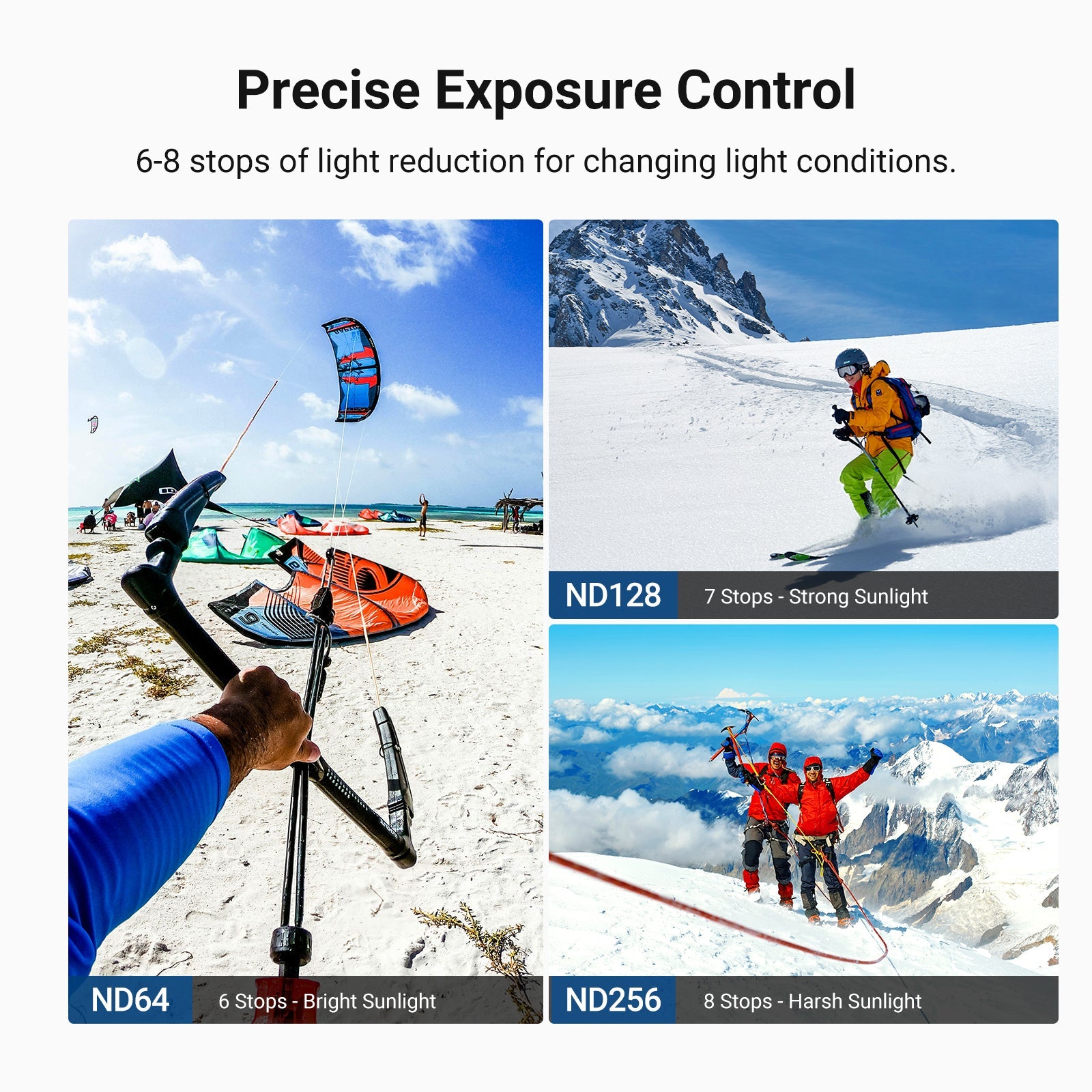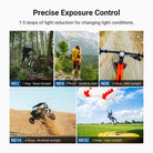 - Flexible Exposure Control- Variable ND64-256 filter cuts light by 6-8 stops to prevent overexposure in various conditions while adding dynamic motion blur effects. Rotate the frame for accurate ND adjustment
