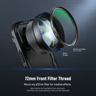 - Standard 72mm Front Interface- Features a front M72 x 0.75 threaded front interface to attach phone lens filters like ND, VND, CPL, UV, and effect filters for more professional shooting