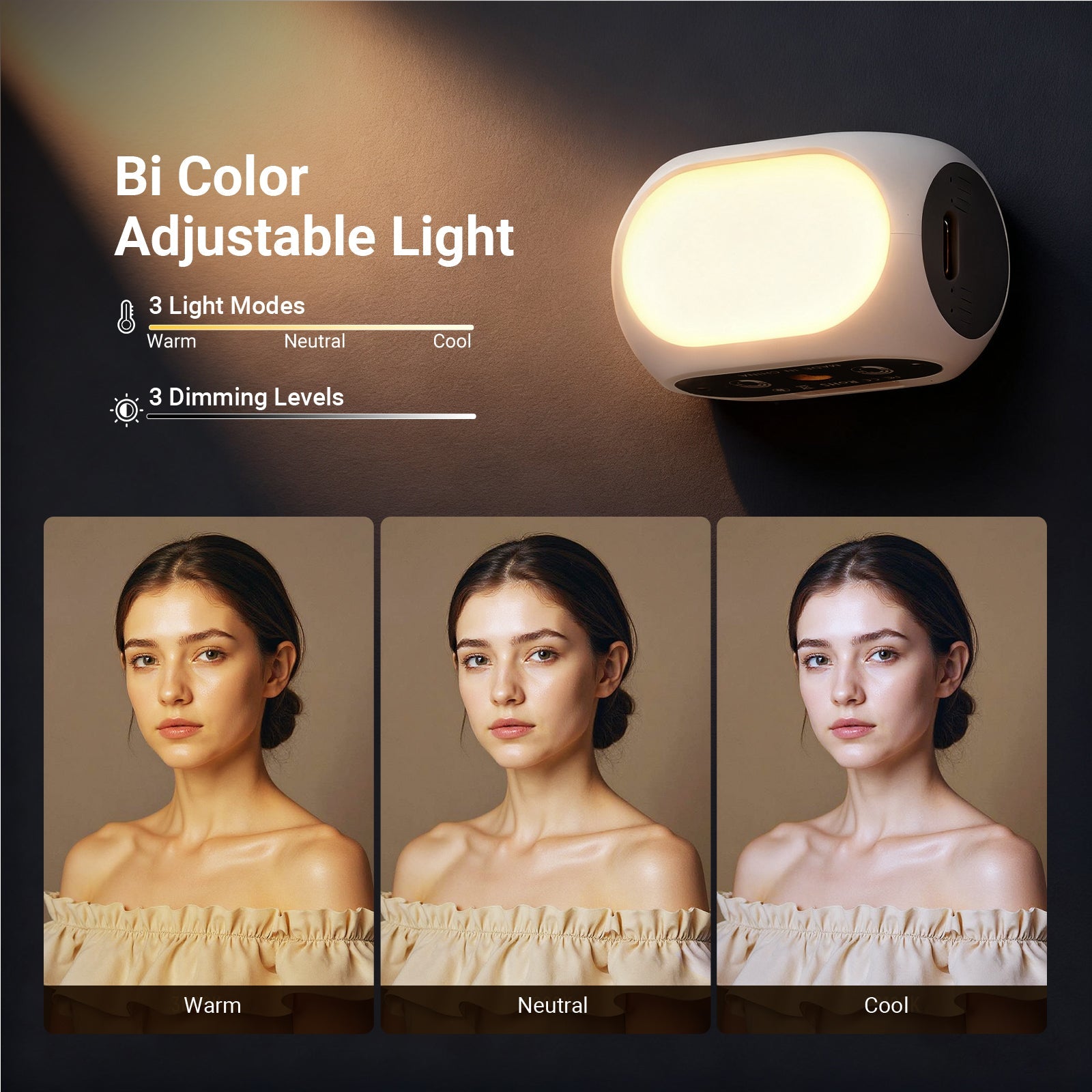 • Color Temperature Modes: Warm, Cool, Neutral