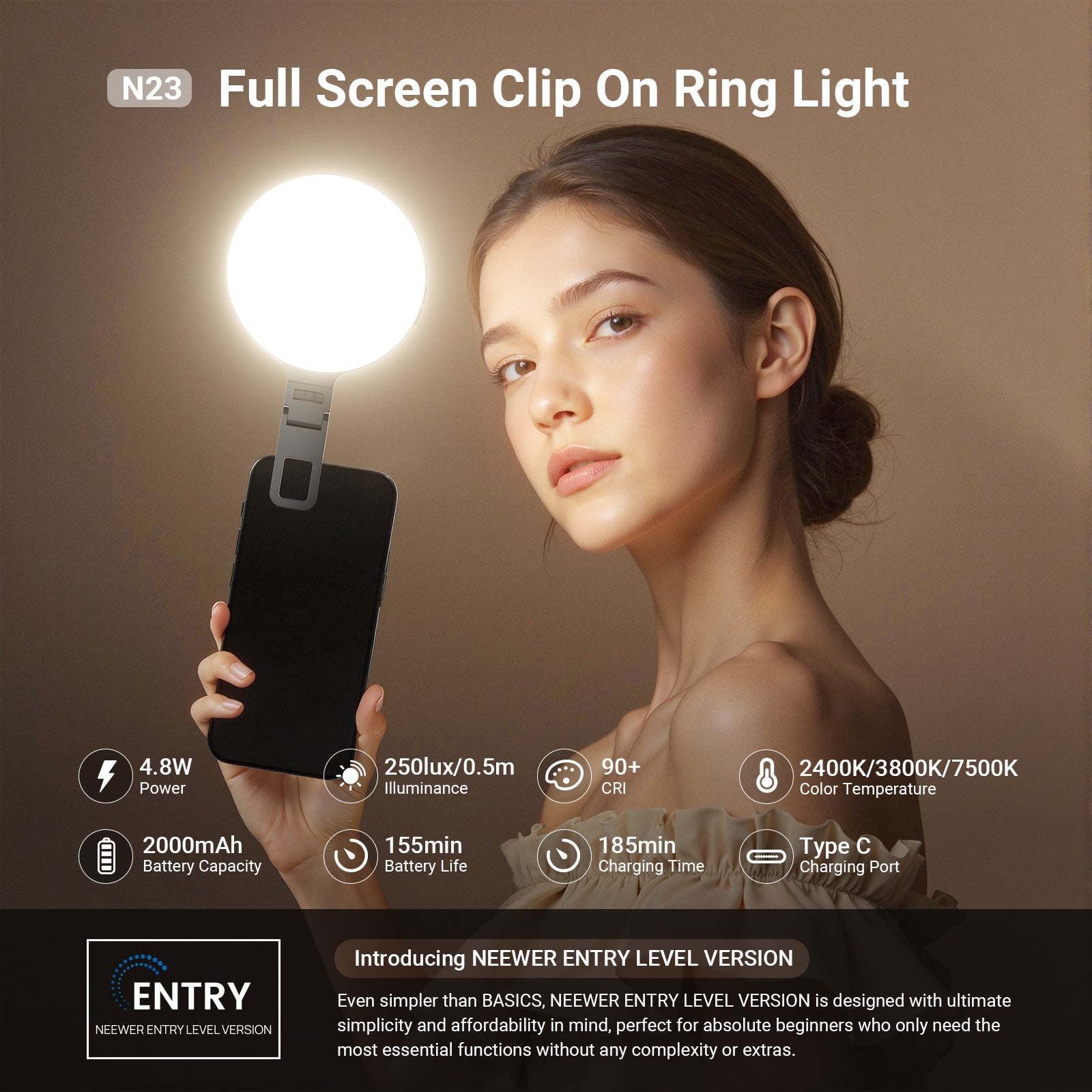 - Full Screen Mini Ring Light- NEEWER LED phone Selfie light is only 4"x4.2"x0.7" and 3.95oz, compact and portable. Essential/must have photography lighting gear for content creators, social media influencers, makeup artists, travel vloggers, and more