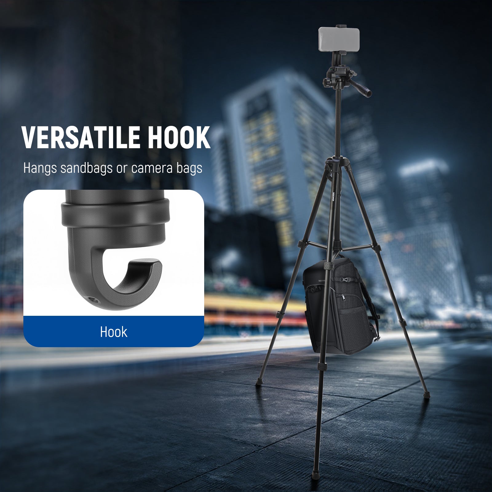 - Foldable Tripod & Phone Mount- This portable and lightweight (2lb/968g) tri pod stand is easy to transport and supports both vertical and horizontal shooting with its drag pan head. It offers a 1.8'-4.7'/54-142cm height adjustment range with secure flip locks for quick setup. The rotatable cellphone tripod holder is compatible with iPhone Android Samsung and other cell phones 2"-3.1"/50-80mm wide, ideal as content creator video recording, filming and photography accessories