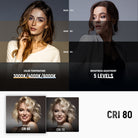 • 3 Color Modes & 5 Dimming Levels- The built in flip light panel features 36 warm & 36 cool LEDs, delivering up to 990lx/0.3m, CRI80. It offers 3 color modes and 5 brightness levels to suit various lighting needs from selfies and video recording to makeup application. The panel flips 180° for dual direction lighting. With a 1000mAh rechargeable battery for up to 53min continuous use at full brightness, fully recharging in 90min