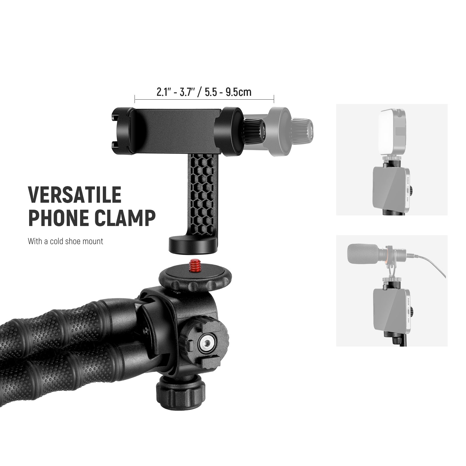 - Phone Clamp Range: 2.1"-3.7"/5.5-9.5cm