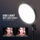 - 24W Full Screen Big Ringlight with Edge Lit Design- Covered in a quality light diffuser panel and featuring advanced edge lit technology, the 144 LEDs deliver soft, evenly diffused, eye friendly lighting with no glare or flicker. Emitting up to 1640 lux at 0.5m, this 24W large circle halo light with stand for video recording with a 12"/30cm diameter effectively illuminates and enhances the finest details of your subject, providing wide, uniform lighting coverage for your workspace