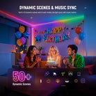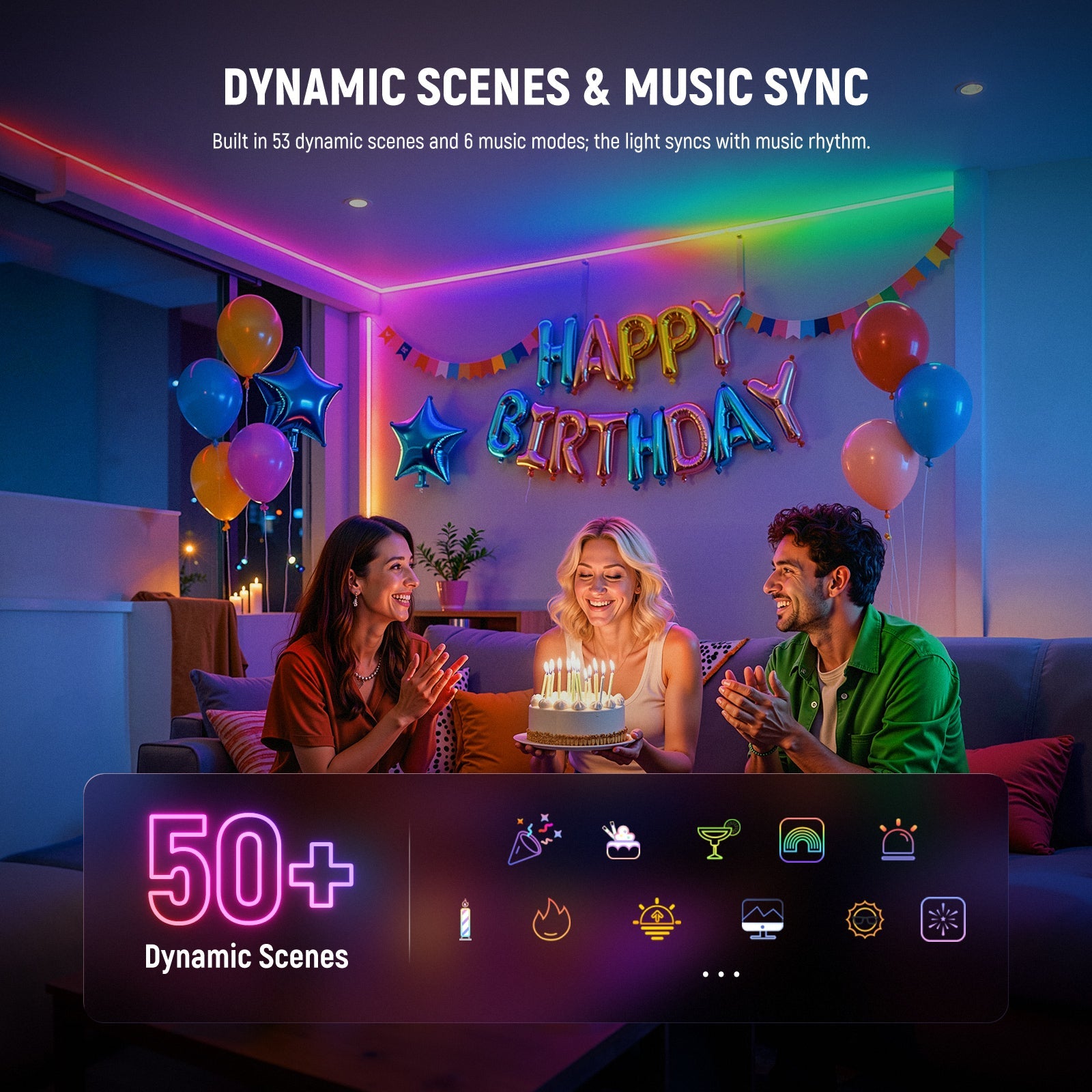 • Dynamic Scenes & Music Sync- The LED neon rope light offers 50+ preset scenes inspired by Daily Life, Holidays, Emotions, and Nature, with continuous updates adding more effects for novelty lighting to suit your needs. The included control box features a built in microphone that detects music in real time, enabling the rainbow light strip to change colors in sync with music beats or game sound effects, easily creating a dynamic and immersive atmosphere