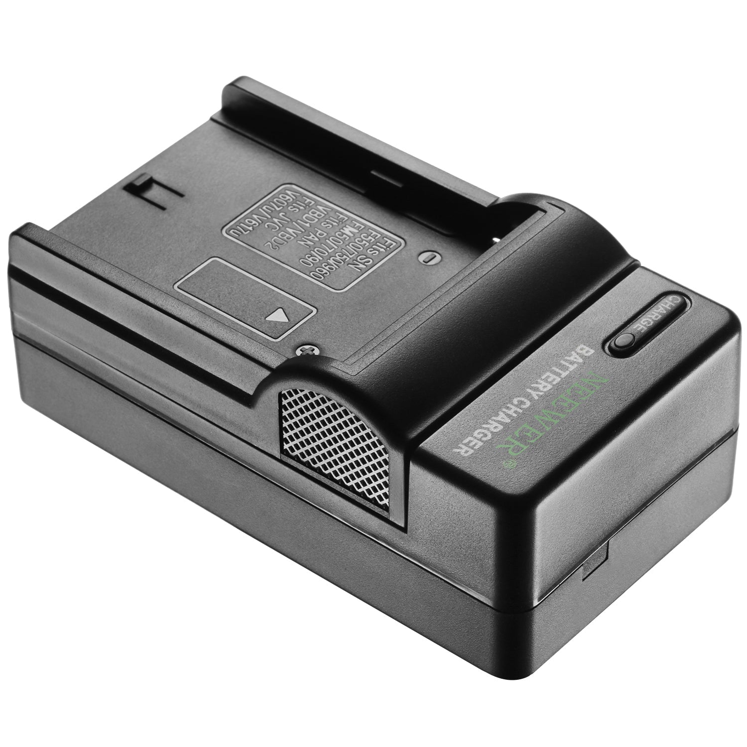 - The charger is designed with a fold-able A/C plug that charges your camera/camcorder battery anywhere in the world.