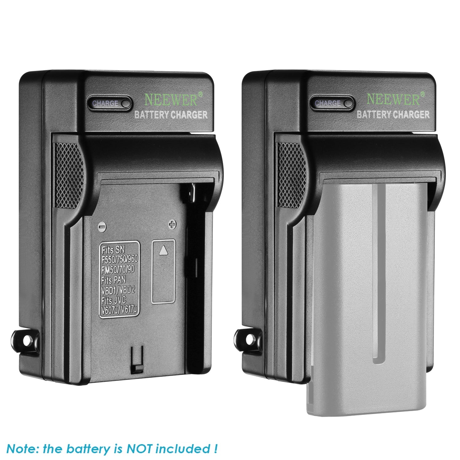 - Charger is suitable for: Sony NP-F550/F750/F960/F330/F570; PA-VBD1, PA-VBD2 Batteries