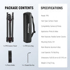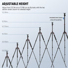 • Transform into a Monopod- One of the tripod leg tubes can be quickly disassembled and connected with the central axis to transform into a monopod, great for capturing quick, moving situations, versatile as a trekking pole during your hikes. The height of the monopod is adjustable from 31.5"/80 cm to 74.4"/189 cm. Ideal tri pod stand with phone holder attachment compatible with iPhone for content creator essential photography videography accessories, influencer must have camera creation gear