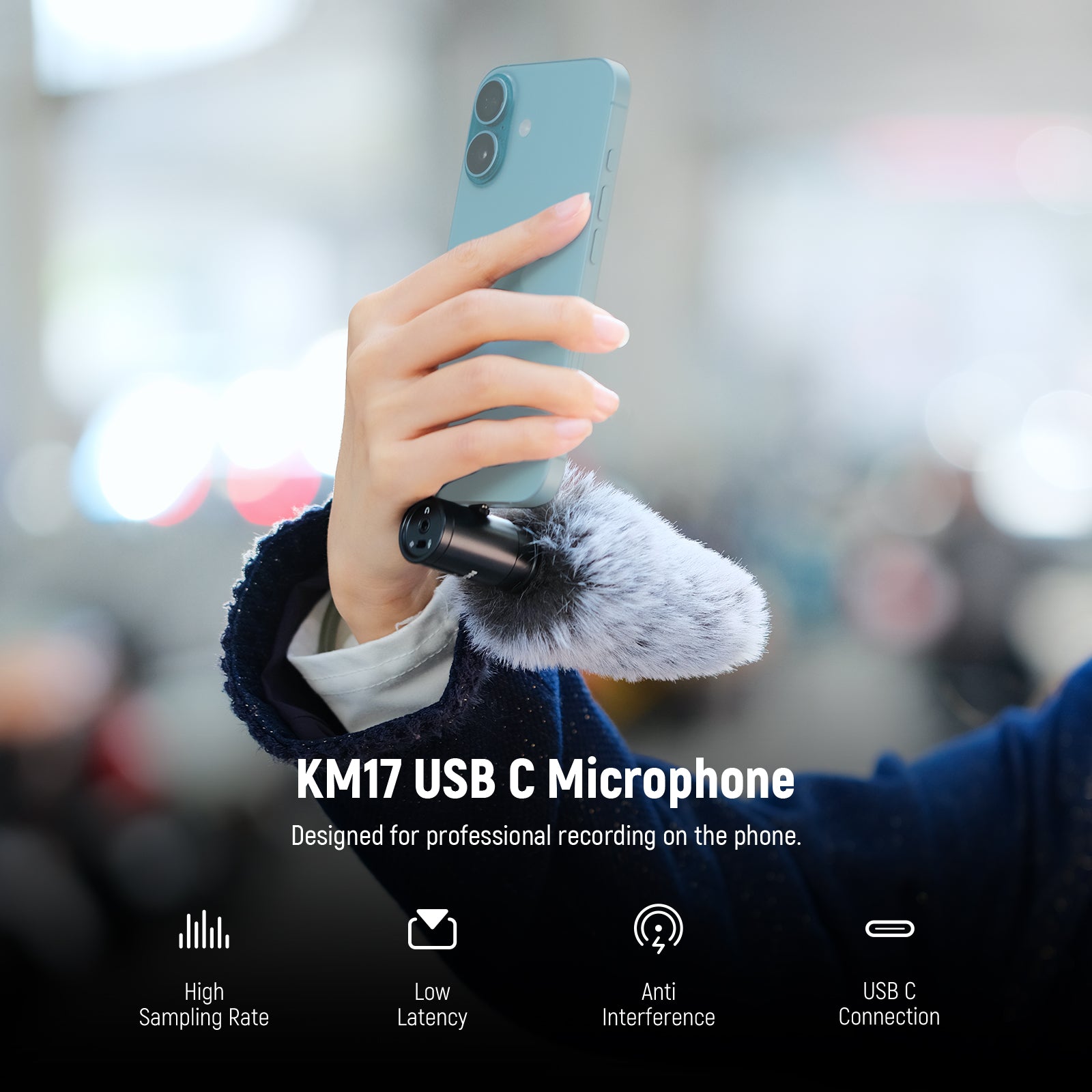 - High Sensitivity- With its high sample rate and hyper cardioid directivity, USB C digital output and noise reduction in one touch, the KM17 is capable of getting sound sources accurately, reducing ambient noise and delivering clean, detailed sound for video blogging