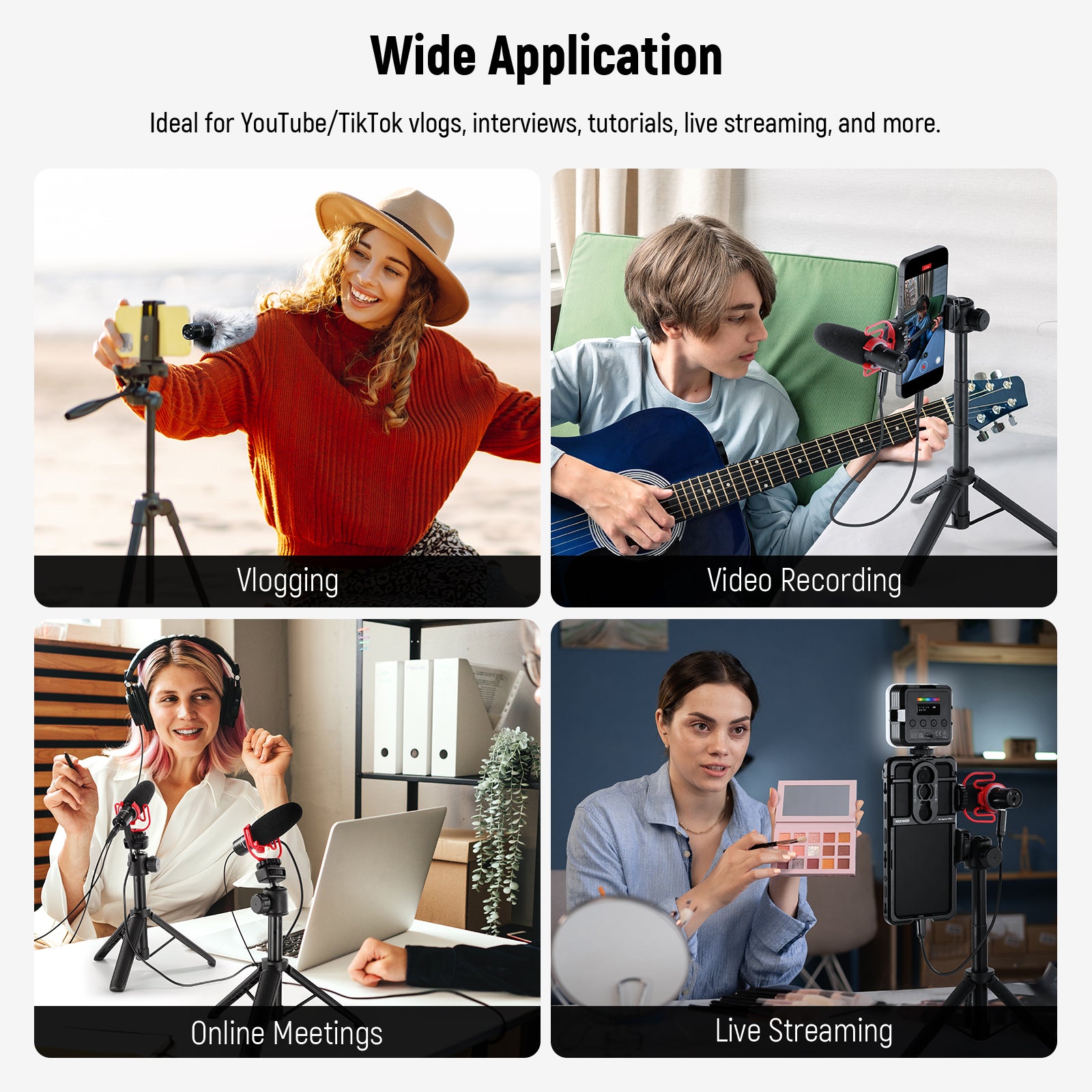- Wide Range of Applications- The microphone shockmount features a cold shoe base and OTG Cable suitable for various scenarios, delivering a flexible and stable audio recording setup. It is a must have compact microphone for video recording, YouTube, Vlogs, TikTok, interviews, family vacations, trips, live music, outdoor events, and tutorials