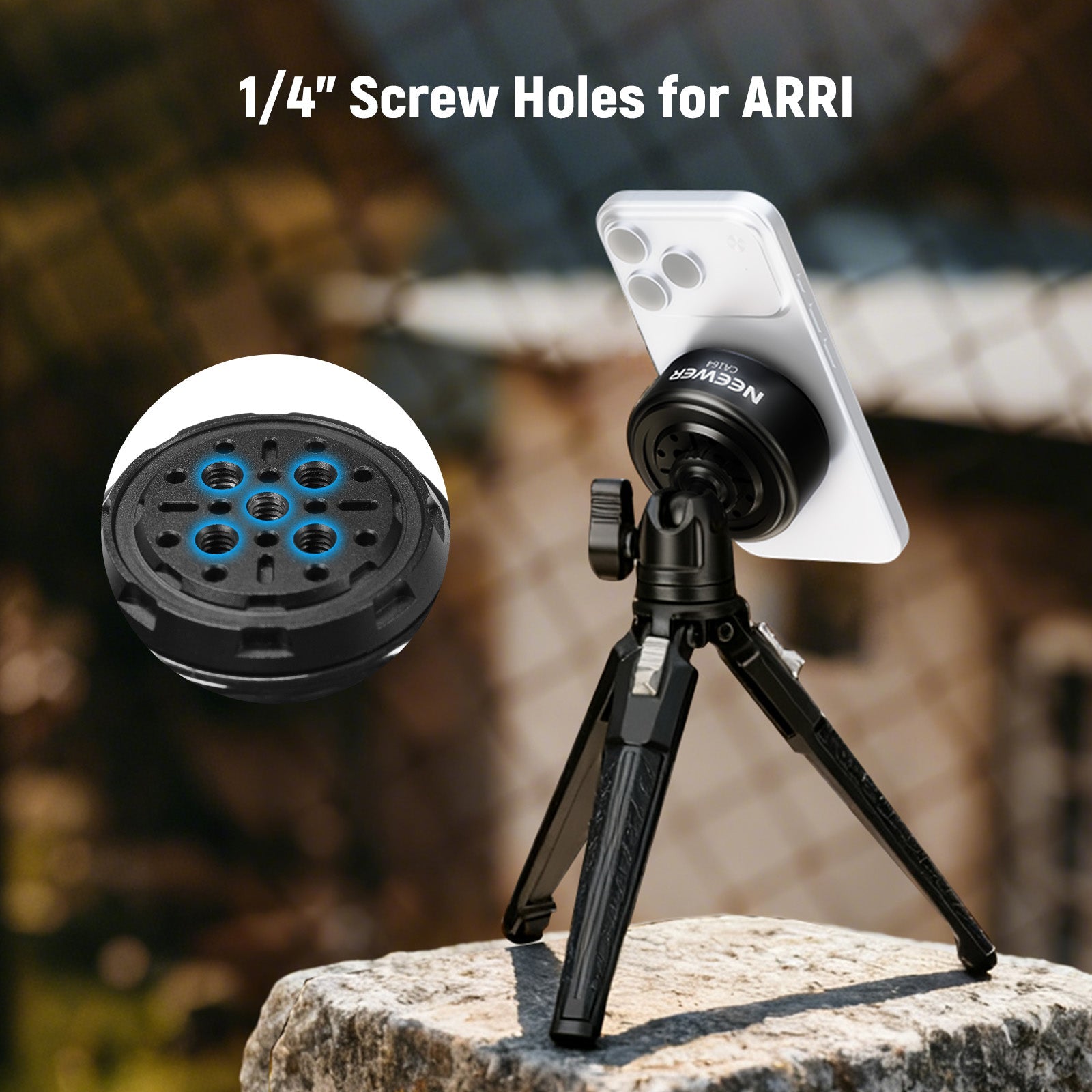 • 1/4" Screw Holes for ARRI- This car inside/outside/dash mount connects magic arm phone holders (not included) compatible with iPhone 17 Air Pro Max 16 15 Plus and Android mobile. For action camera adapters, attachments, accessories with 1/4" screw compatible with GoPro Hero 13 Go Pro 12 11 10 9 Black compatible with DJI OSMO Action 5 Pro 4 3 compatible with Insta360 X5 X4 X3 GO 3S Insta 360 Ace Pro compatible with AKASO Brave 8 7, etc