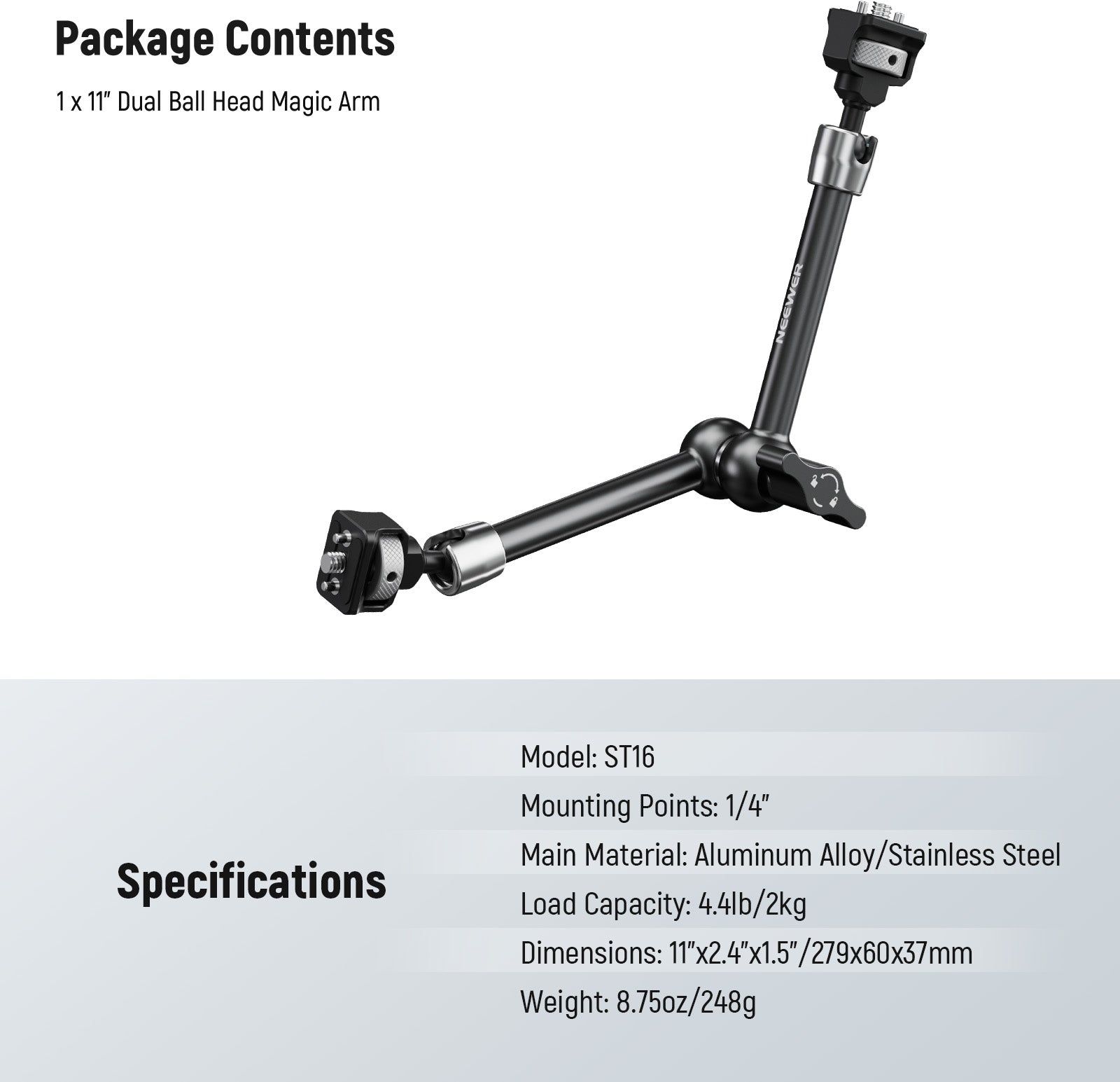 Bras magique NEEWER ST08 9,8"/25 cm en alliage d'aluminium