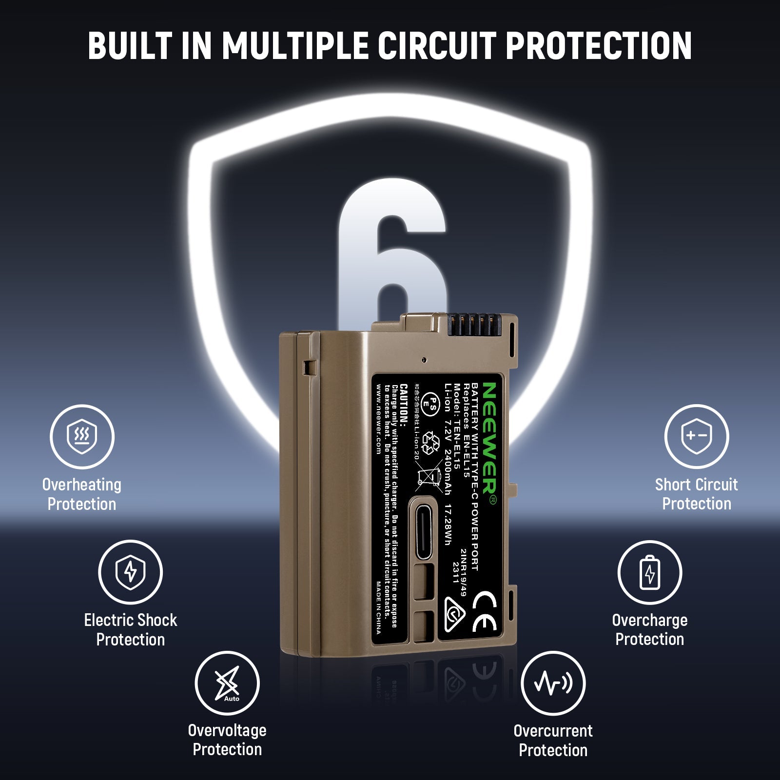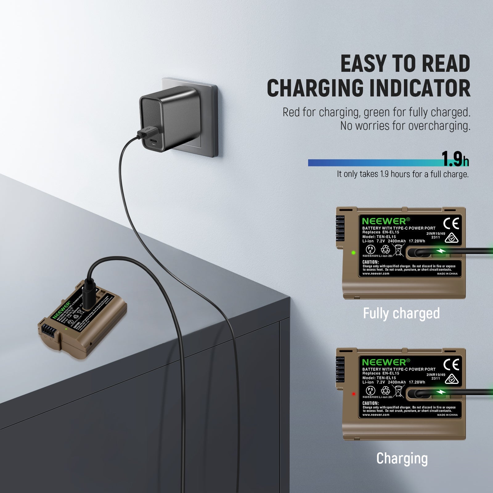 NEEWER 2400mAh EN-EL15c batterie de remplacement pour appareil photo Nikon Zf Z8 Z7 II Z6 II Z5