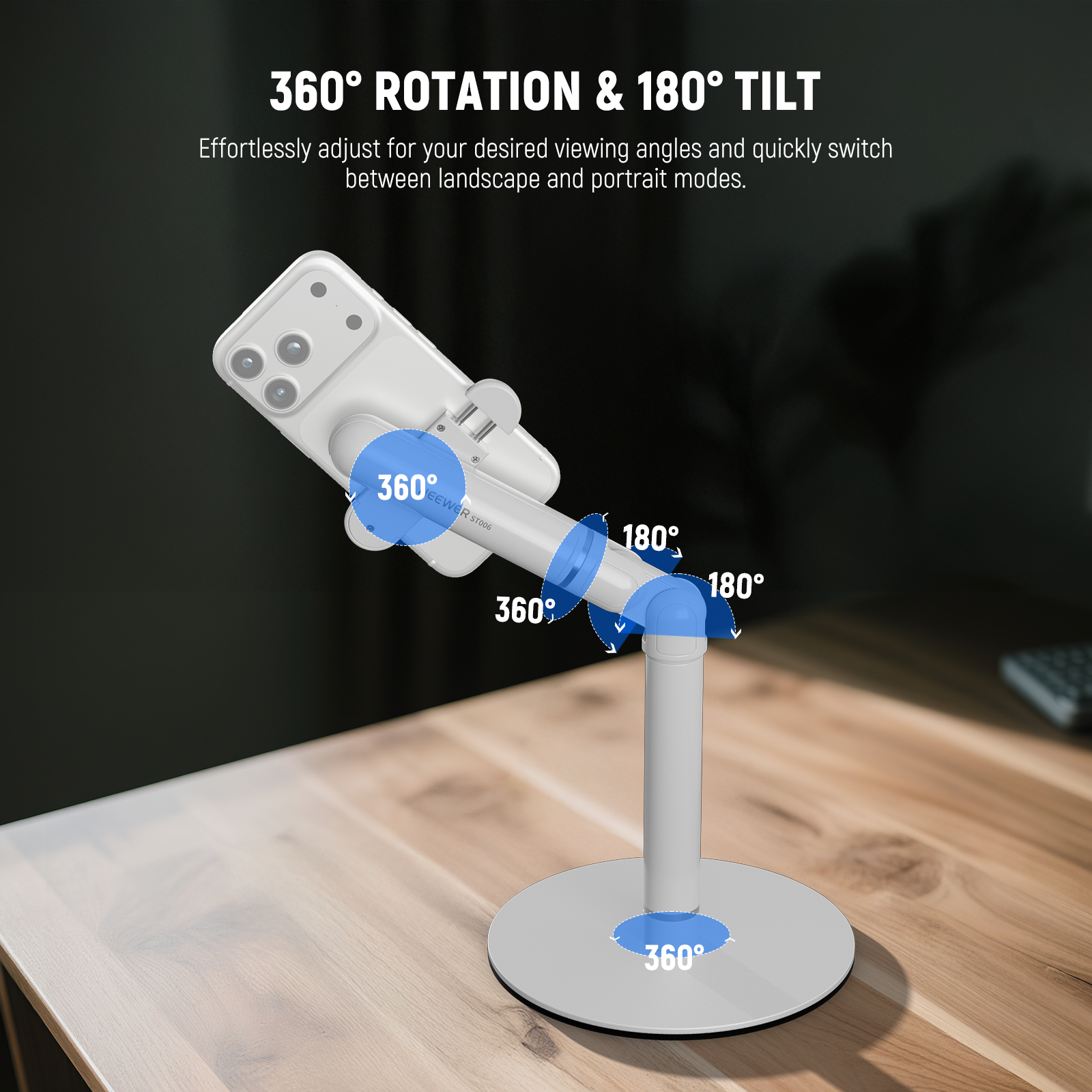- Rotation à 360° et inclinaison à 180° - Grâce à son inclinaison remarquable à 180° et à sa rotation complète à 360°, ce support pour téléphone portable permet d'ajuster facilement l'angle de vue et de passer rapidement du mode paysage au mode portrait, offrant ainsi des angles optimaux pour regarder des vidéos, suivre une recette de cuisine ou participer à des appels vidéo.