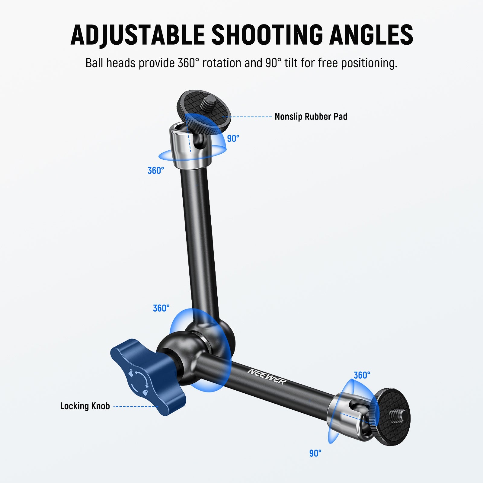 - Construction robuste en alliage d'aluminium - Conçu pour la photographie en extérieur, ce bras magique en alliage d'aluminium résiste à la rouille, aux rayures, à la déformation et à d'autres dommages potentiels.