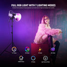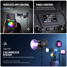 - Éclairage photo RGB complet à intensité variable avec précision - Cet éclairage de studio offre des modes d'éclairage CCT/HSI/RGBCW/FX/Gel/Source/XY pour une palette de 36 000 couleurs RGB, une large plage de température de couleur de 2 500 K à 7 500 K, 40 couleurs de gélatines LEE&ROSCO (20 de chaque), 17 sources lumineuses et 17 scènes, pour une créativité sans limites. La technologie de gradation PWM permet un réglage précis de la luminosité de 0 % à 100 % par incréments de 1 %, et propose 4 courbes de gradation pour une précision optimale. Un IRC élevé (95+) et un TLCI (97+) garantissent un rendu des couleurs fidèle.