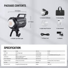 - 3 modes de ventilation et large compatibilité avec les accessoires : choisissez entre les modes AUTO, BOOST et SILENCIEUX pour une dissipation thermique efficace et silencieuse, évitant ainsi la surchauffe. La monture Bowens permet de fixer une boîte à lumière, un réflecteur ou tout autre accessoire photo ou de modification de la lumière pour un éclairage plus professionnel et doux. Le trou pour parapluie et le réflecteur offrent un contrôle précis de la lumière, tandis que la fixation pour trépied permet un réglage d'angle de 0 à 180°.