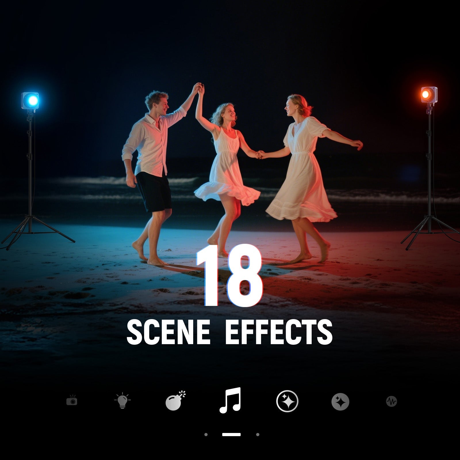 - 7 modes d'éclairage et 18 effets de scène : explorez une créativité lumineuse unique en choisissant parmi 7 modes d'éclairage : CCT, HSI, RGBCW, XY, GEL, SOURCE et FX. Le mode FX propose 18 effets de scène intégrés, tandis que le mode SOURCE offre 17 sources lumineuses prédéfinies. Le mode HSI permet un réglage précis de la couleur (0-360°), de la saturation (0-100 %) et de la luminosité (0-100 %). De plus, 4 courbes de gradation (linéaire, en S, logarithmique et exponentielle) garantissent un contrôle précis et professionnel de la lumière, répondant ainsi aux exigences les plus élevées.