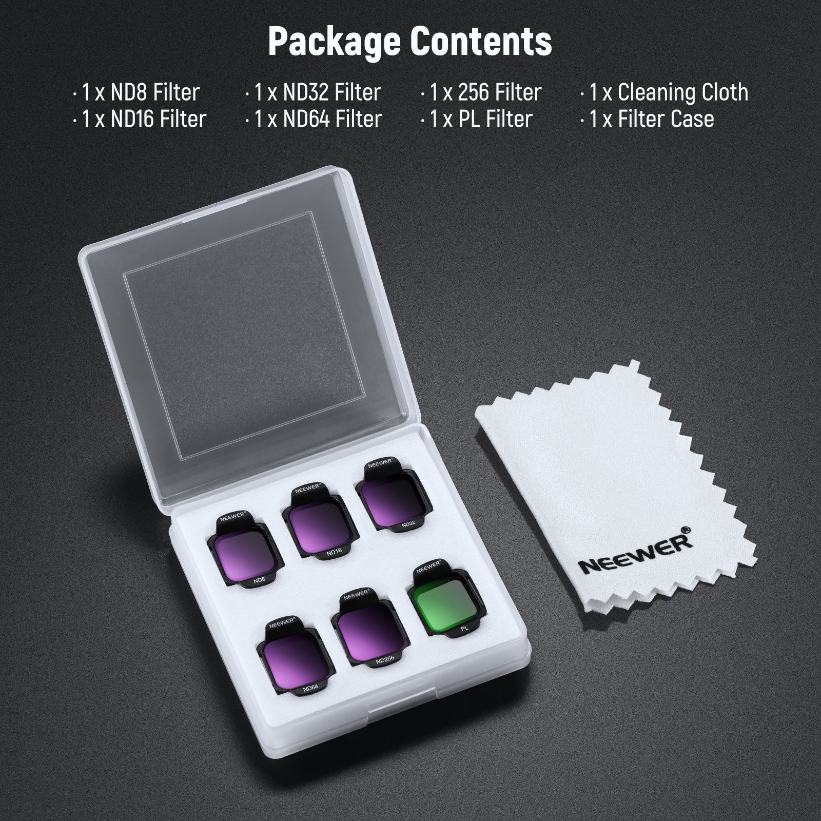 Package Contents of the NEEWER 6-Pack ND/PL Filter Set for DJI Flip Drone