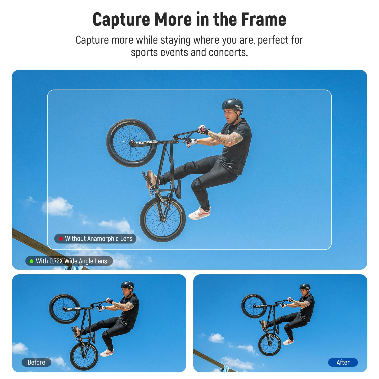 - Capturez plus d'éléments dans le cadre : élargissez votre champ de vision à 112° et capturez davantage de sujets avec une légère distorsion sur les bords. Idéal pour la photographie de rue immersive et créative, les paysages naturels et urbains, l'architecture et les photos de groupe. Accessoires indispensables pour la photographie d'action et matériel incontournable pour les créateurs de contenu et les influenceurs.