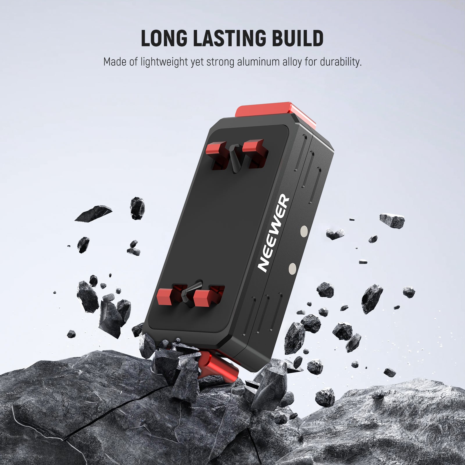 - Compatibilité : Le support à dégagement rapide NEEWER GP-88, doté d’une vis 1/4", est compatible avec les caméras d’action Insta360 X5, X4 et X3, ainsi qu’avec les modèles AcePro et AcePro2 (après retrait de la plaque de fixation rapide supérieure). Il se fixe magnétiquement à votre appareil photo sans que son poids ne se fasse sentir (seulement 33 g).
