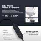 • Alimentation USB-A avec câble d'extension de 1,95 m - Doté d'un câble USB-A extra long de 1,95 m, ce projecteur LED portatif s'alimente facilement via USB à partir d'un chargeur portable, d'un ordinateur portable, etc., sans nécessiter de recharges fréquentes. Le câble d'extension offre une plus grande flexibilité de placement et de déplacement lors de la mise en place de l'éclairage. Il est équipé de boutons intégrés pour un contrôle simple de l'alimentation, de la luminosité et de la température de couleur. Un sac de transport portable est inclus pour ranger tous les accessoires et faciliter le transport.