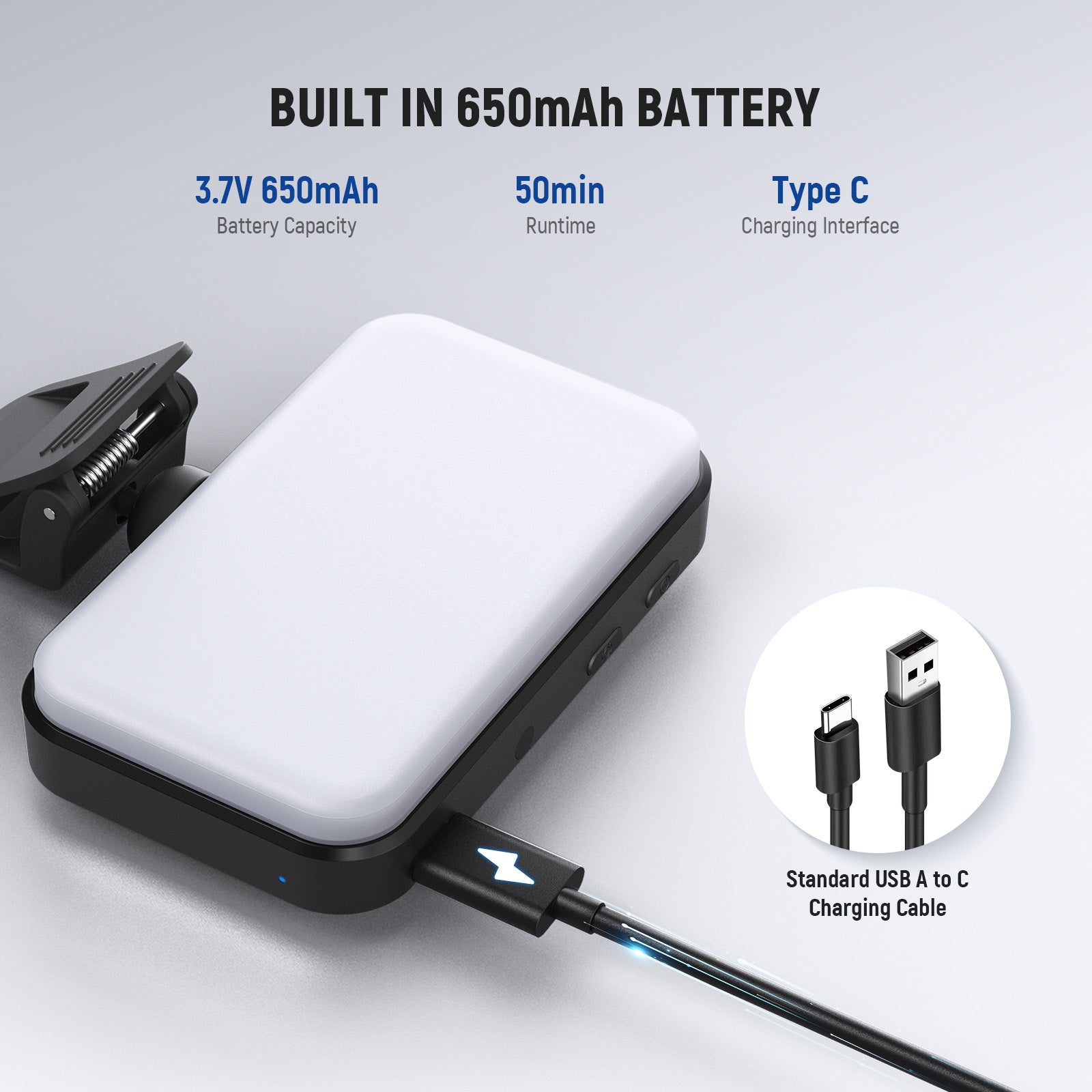 - Lampe LED rechargeable pour vidéos - Sa batterie intégrée de 650 mAh offre jusqu'à 50 minutes d'autonomie après une charge complète. Rechargeable via une source d'alimentation 5 V/1 A (chargeurs muraux, chargeurs portables ou ordinateurs) grâce au câble USB fourni, elle est idéale pour la création de contenu en déplacement. Accessoire indispensable pour les selfies, les streamers et les influenceurs. Remarque : Pour une durée de vie optimale de la batterie, veuillez charger complètement l'appareil avant la première utilisation.
