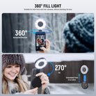 - Éclairage selfie magnétique pivotant à 360° - Cet anneau lumineux miniature, accessoire photo, est compatible avec les iPhone 16 Pro Max Plus, iPad Pro 15/14/13/12 et autres appareils magnétiques (compatibles MagSafe). Pour les appareils non magnétiques, utilisez l'anneau magnétique adhésif fourni pour le fixer sur un smartphone Android (idéal pour les prises de vue aériennes) ou sur un ordinateur portable (compatible avec les Samsung Galaxy S25, S24, S23 Ultra, etc.) pour les appels vidéo. Il offre une rotation horizontale à 360° et une inclinaison verticale à 270°, permettant une utilisation avec les caméras avant et arrière.