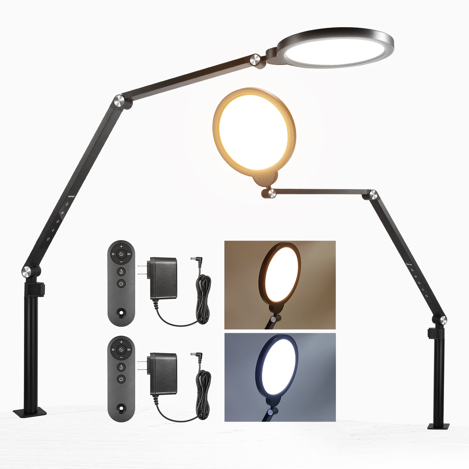 - Panneau de commande/Télécommande - Le bras articulé intègre un panneau tactile pour une commande simplifiée de l'éclairage principal : allumage/extinction, réglage de la température de couleur et de la luminosité, programmation de la minuterie, etc. Le kit comprend également une télécommande (avec pile bouton remplaçable) pour une gestion sans fil et pratique de l'éclairage. Les deux méthodes permettent de programmer la durée d'éclairage : 30 ou 60 minutes, selon vos besoins.