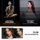 - Éclairage circulaire à intensité variable 3000K-6500K - Cet éclairage LED pour l'enregistrement vidéo offre une température de couleur réglable de 3000K à 6500K, permettant une transition fluide entre les tons chauds pour une ambiance chaleureuse et les tons froids pour un environnement professionnel. La luminosité est ajustable sur 10 niveaux, de 10 % à 100 %, pour s'adapter à toutes les conditions d'éclairage, des plus intenses aux plus tamisées. Son indice de rendu des couleurs élevé (IRC 95) garantit une reproduction fidèle des couleurs et de la beauté de l'image.