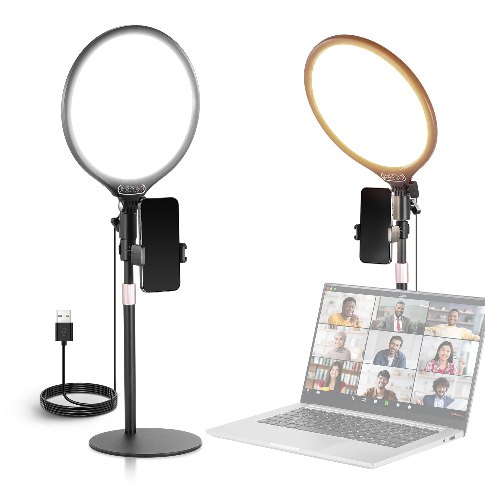 - Idéal pour la photographie sur smartphone : le support de téléphone rotatif à 360° de l’anneau lumineux de table permet une utilisation en mode portrait ou paysage. Ce kit d’éclairage et d’accessoires pour la photographie et la vidéo, compatible avec les iPhone 16, 15 Pro Max Plus, Samsung S24 Ultra et autres smartphones, est parfait pour la photo, le tournage de films et de vidéos, le vlogging et la création de contenus.