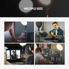 - Pied d'éclairage extensible et inclinaison à 180° - Ce lampadaire annulaire professionnel sur pied, conçu pour un éclairage continu, est doté d'un pied de bureau télescopique robuste en aluminium. Sa hauteur est réglable de 58 à 74 cm (23 à 29 pouces), offrant une grande flexibilité d'utilisation. Inclinable à 180°, il permet un angle d'éclairage optimal. Sa large base métallique antidérapante assure une stabilité parfaite. Grâce à sa molette de réglage sur la tige, la hauteur se règle facilement et le système garantit une installation sécurisée.