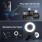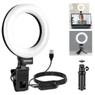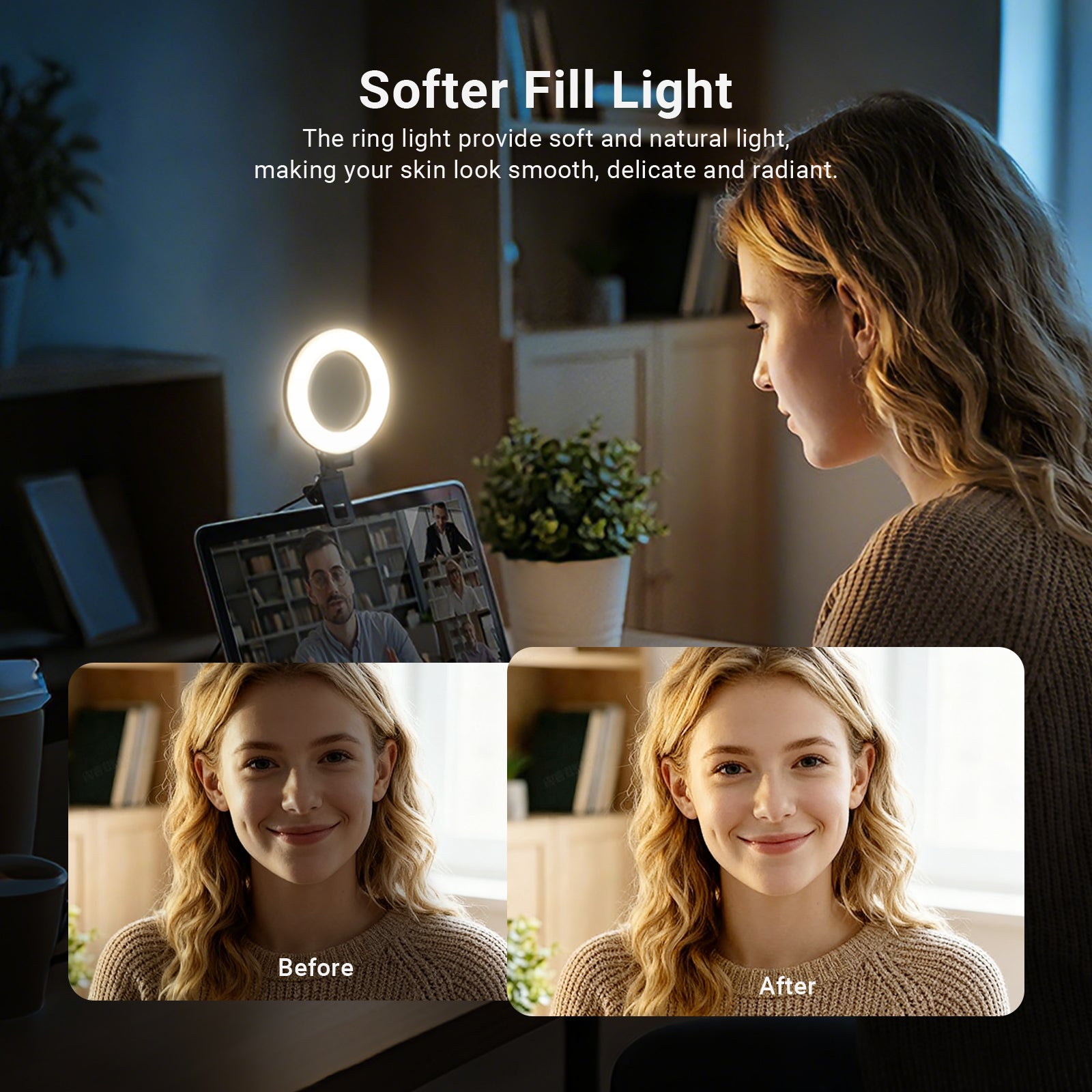 • Léger et portable : ce mini trépied robuste supporte jusqu’à 3 kg et peut être utilisé avec d’autres éclairages LED, microphones ou moniteurs grâce à sa vis 1/4". L’anneau lumineux avec pince pèse 131 g, tandis que le poids combiné de l’anneau lumineux et du trépied est de 188 g. Léger et démontable, il est idéal pour une utilisation nomade.