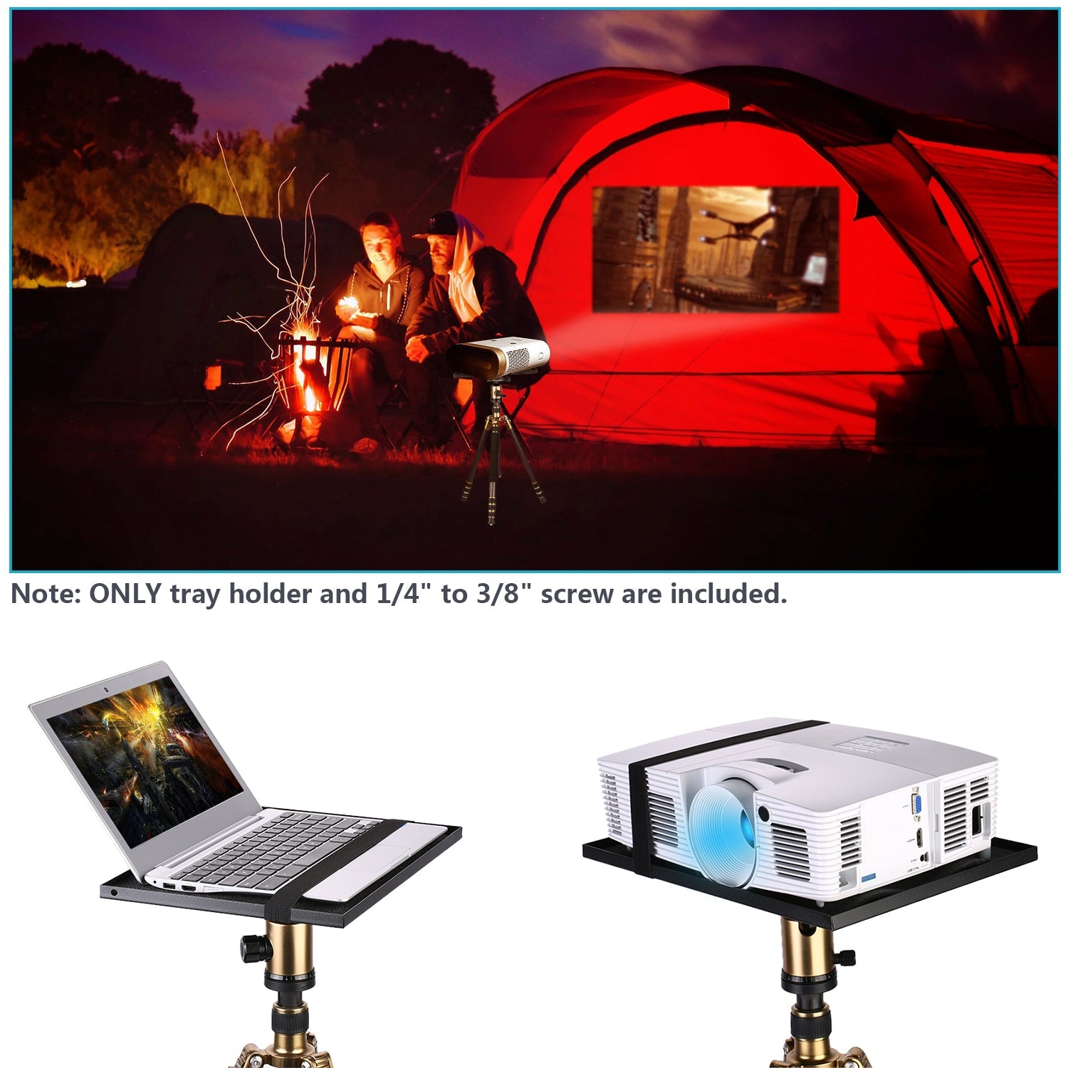 - Le support à plateau est conçu pour maintenir l'ordinateur portable et le projecteur sur un trépied afin de simplifier votre configuration de présentation et de générer un bel effet d'affichage (trépied non inclus).