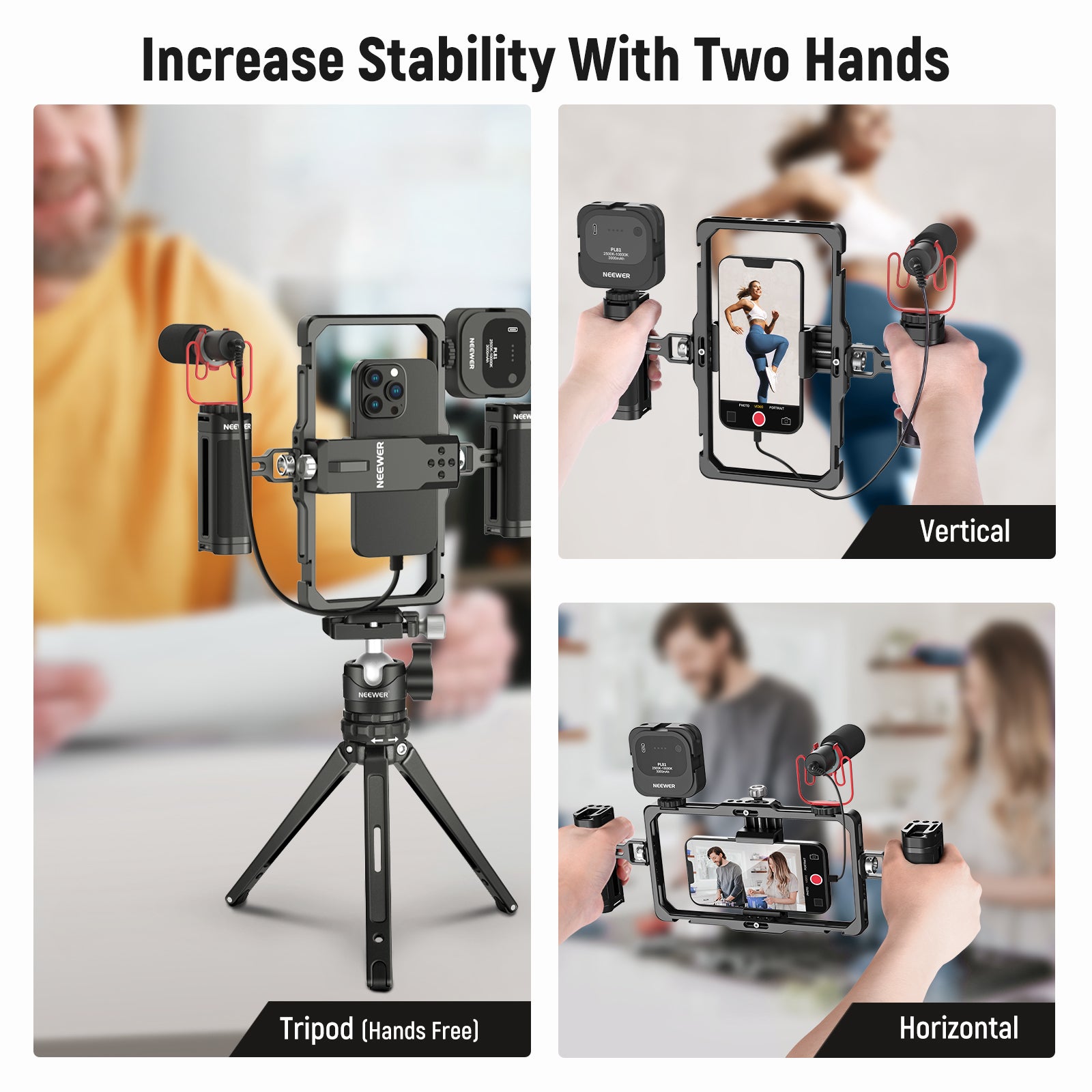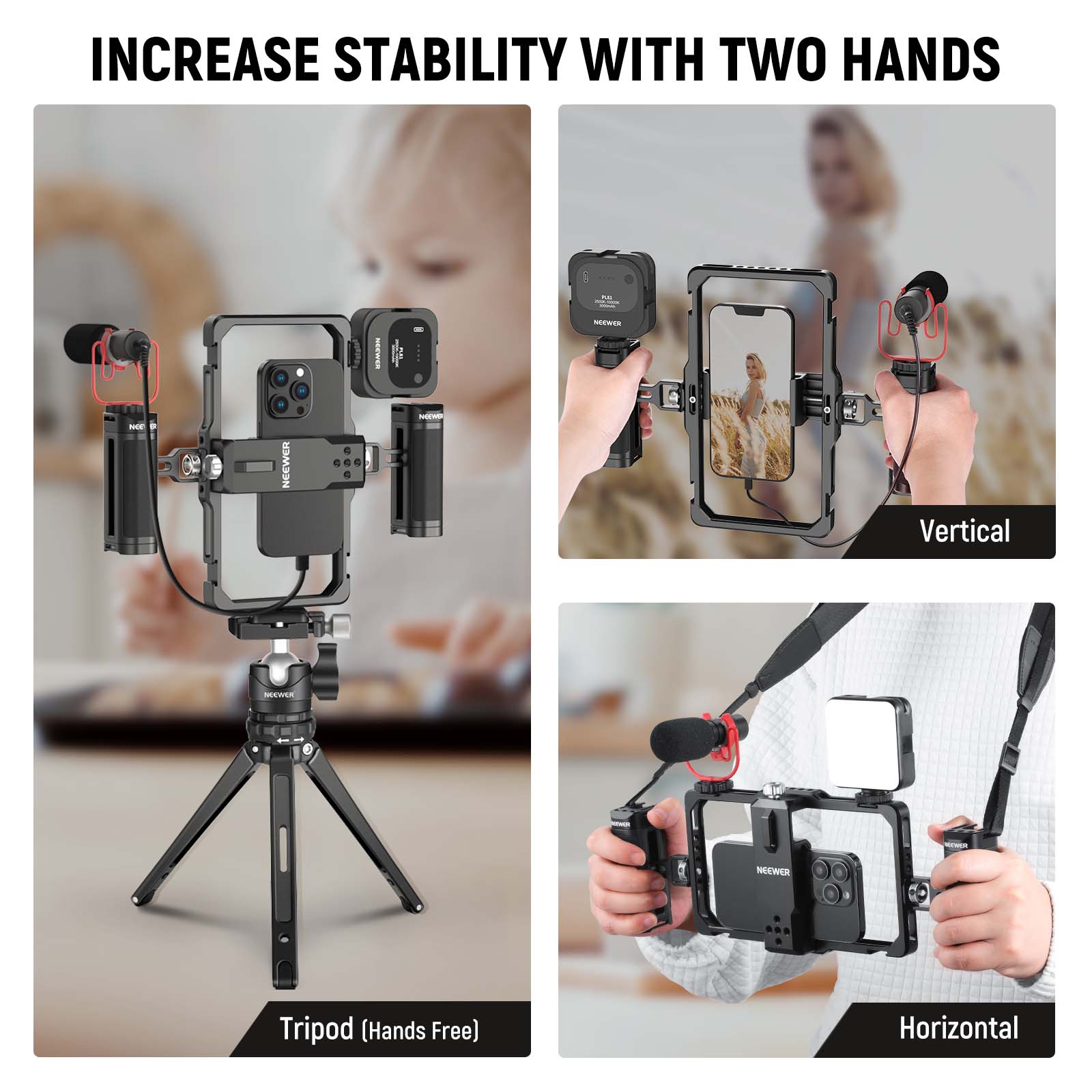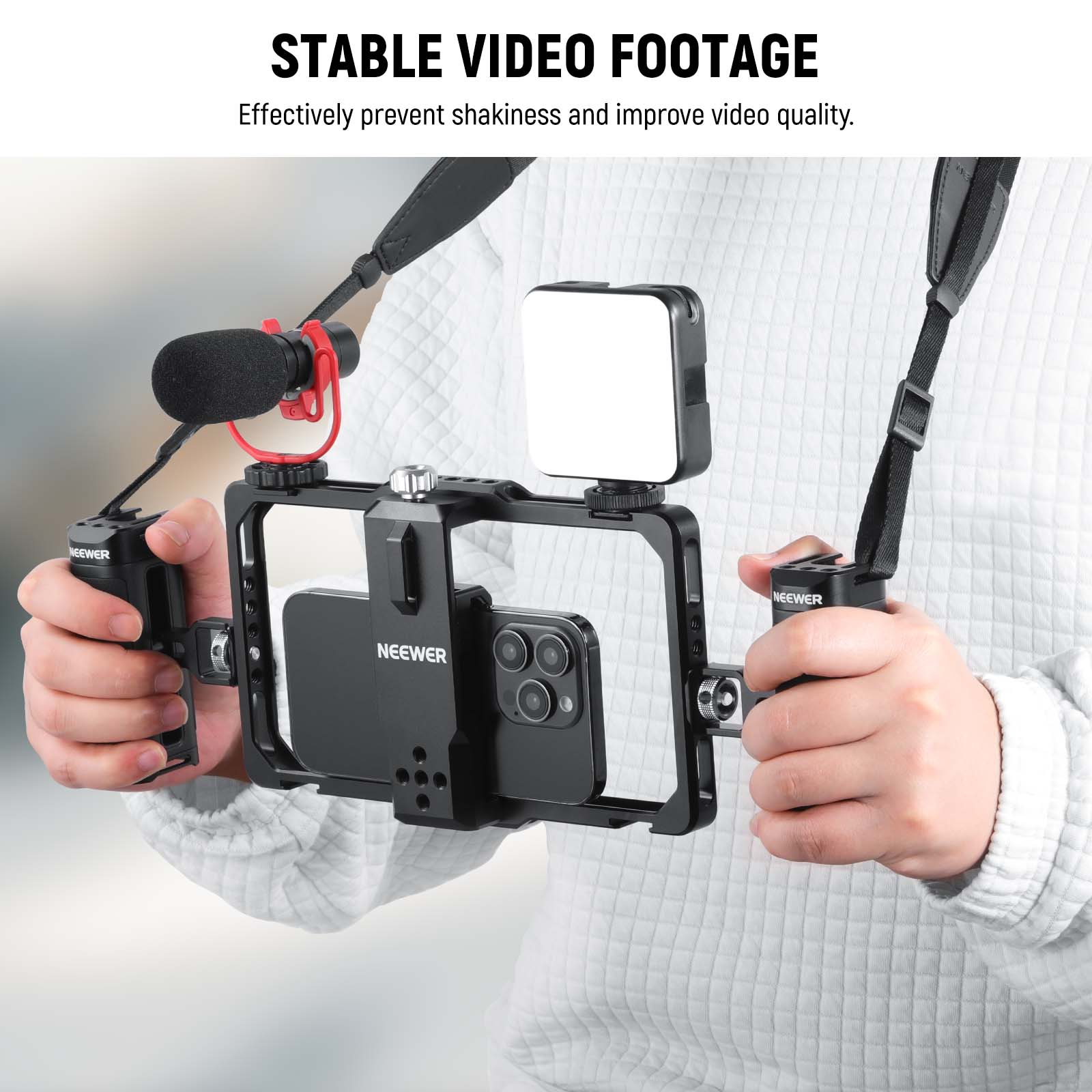 Les accessoires pour téléphone NEEWER sont conçus pour optimiser vos prises de vue mobiles. Notre collection comprend des supports trépieds, des cages, des stabilisateurs pour smartphone et bien plus encore. Compatibles avec une large gamme de téléphones, notamment iPhone, Samsung et autres marques, vous trouverez facilement l'accessoire qui répondra parfaitement à vos besoins.