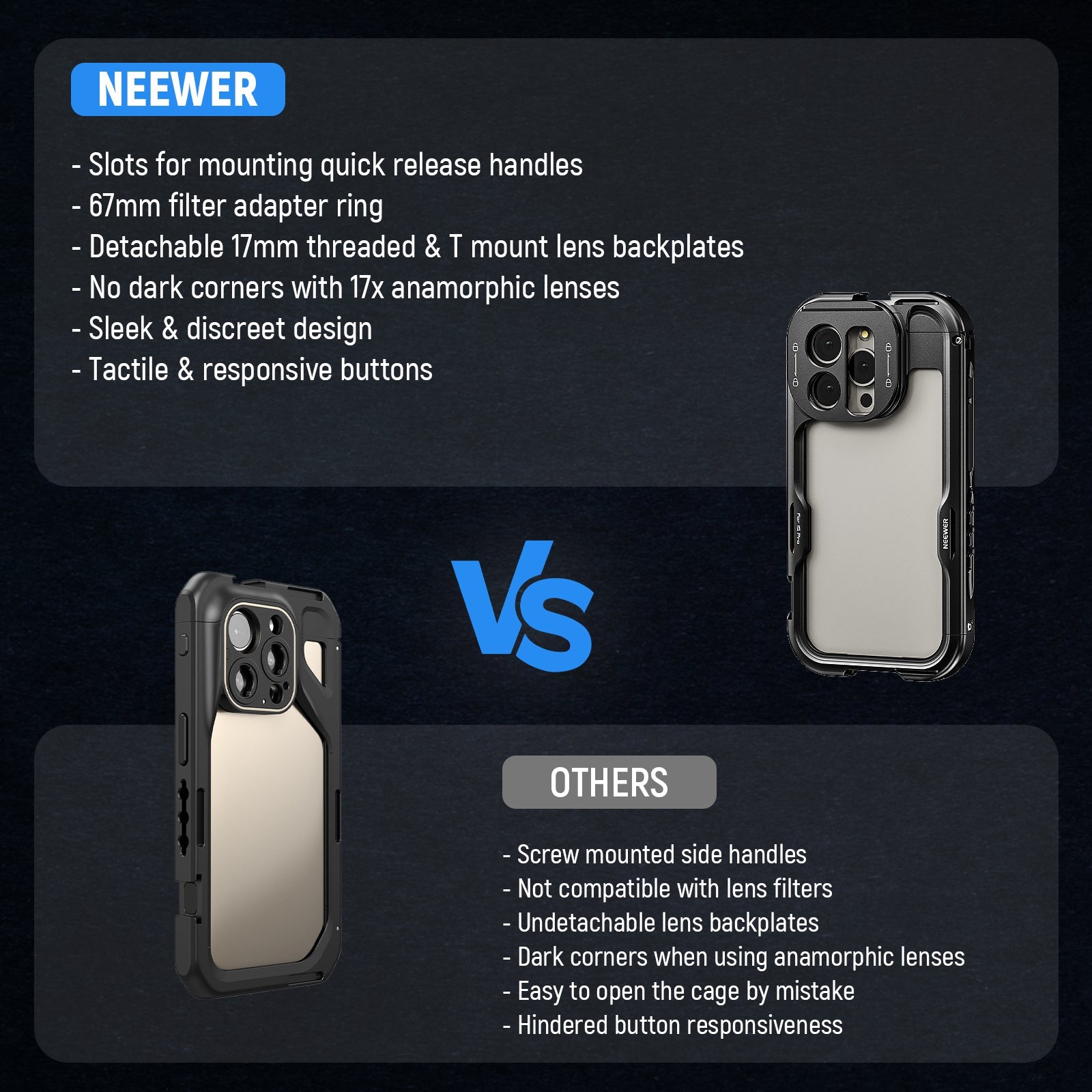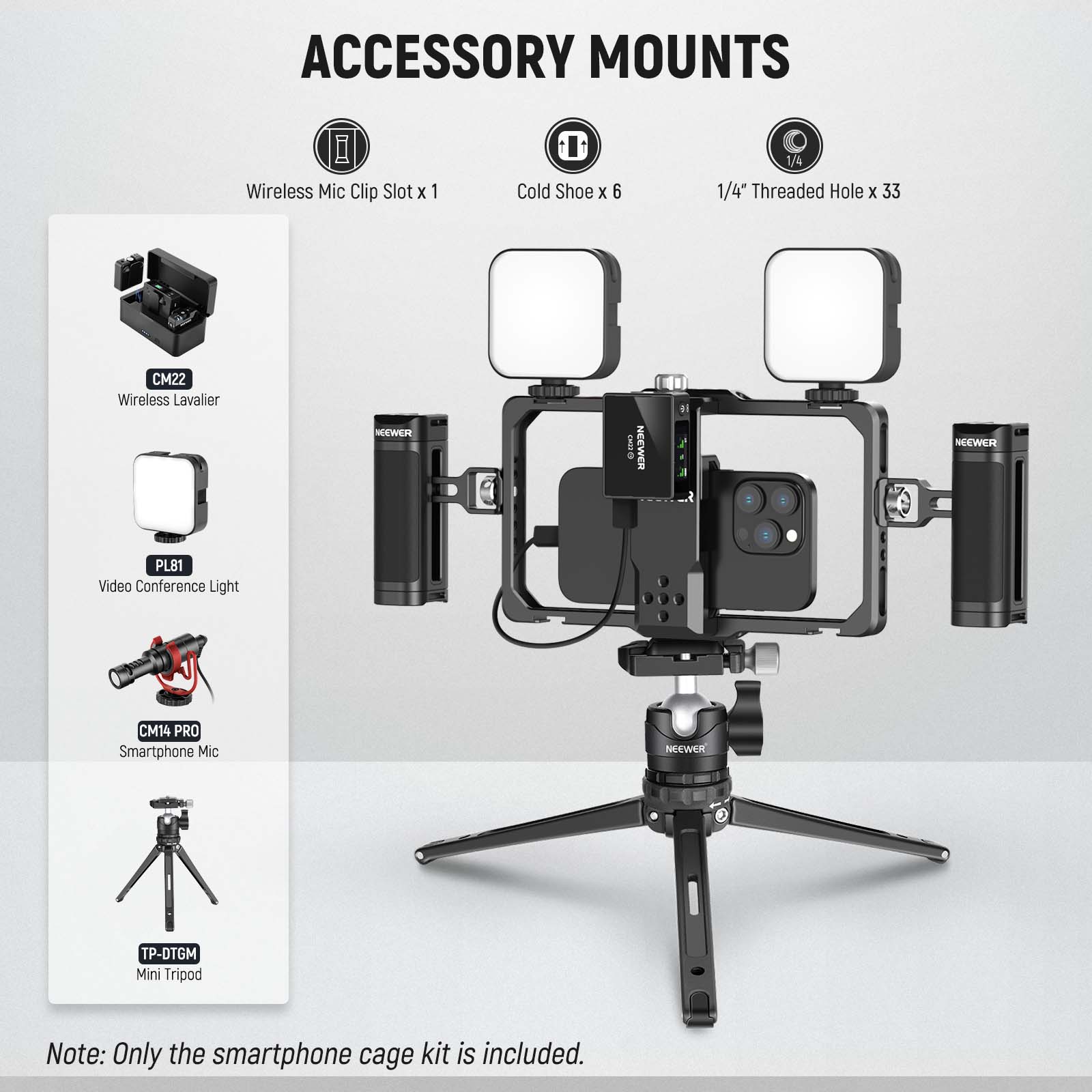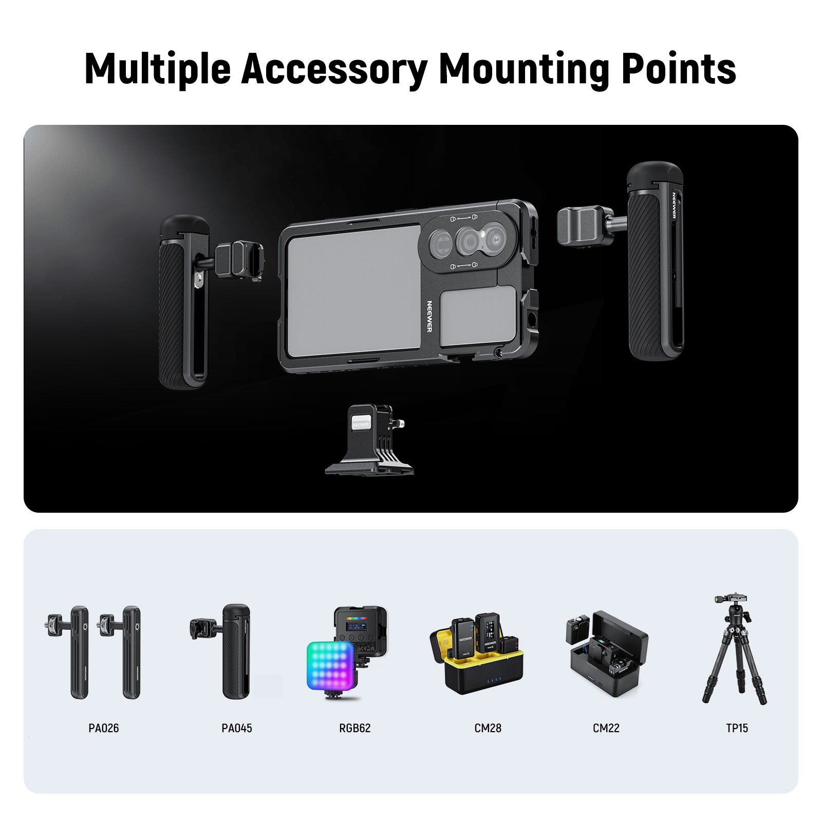 Les accessoires pour téléphone NEEWER sont conçus pour optimiser vos prises de vue mobiles. Notre collection comprend des supports trépieds, des cages, des stabilisateurs pour smartphone et bien plus encore. Compatibles avec une large gamme de téléphones, notamment iPhone, Samsung et autres marques, vous trouverez facilement l'accessoire qui répondra parfaitement à vos besoins.