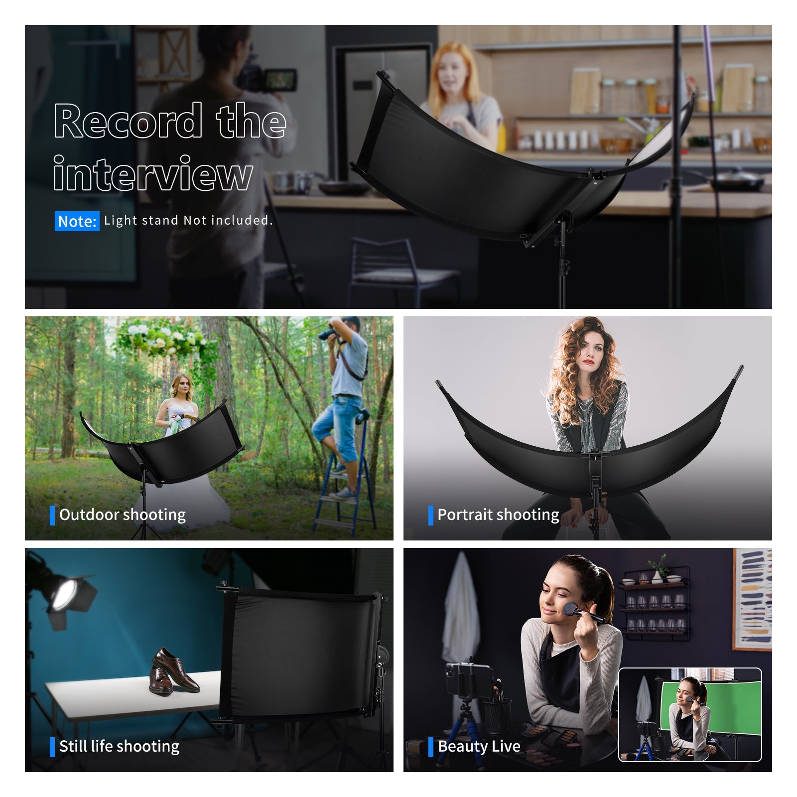 - Faites ressortir le regard : le réflecteur Neewer Clamshell imite la courbure de l’œil et diffuse la lumière en forme de croissant pour sublimer les yeux en portrait. La lumière, réfléchie harmonieusement sous trois angles, élimine les ombres. Ce réflecteur est compatible avec les flashs, les monolights, les éclairages LED et même la lumière naturelle.